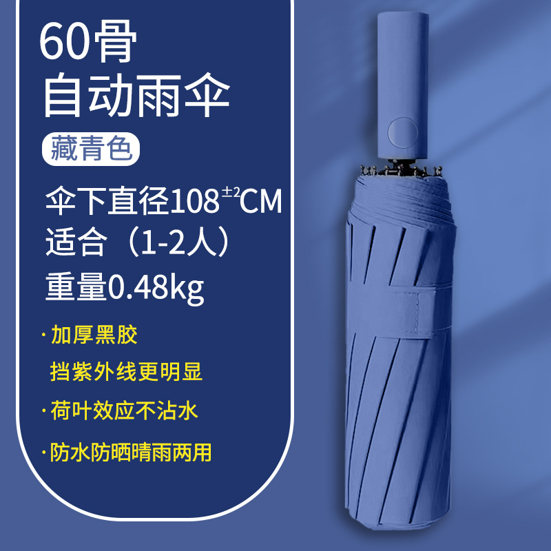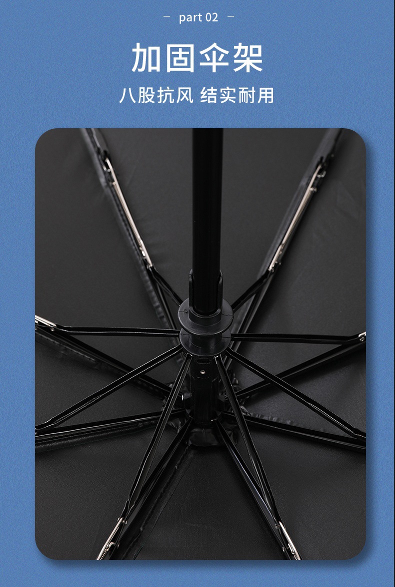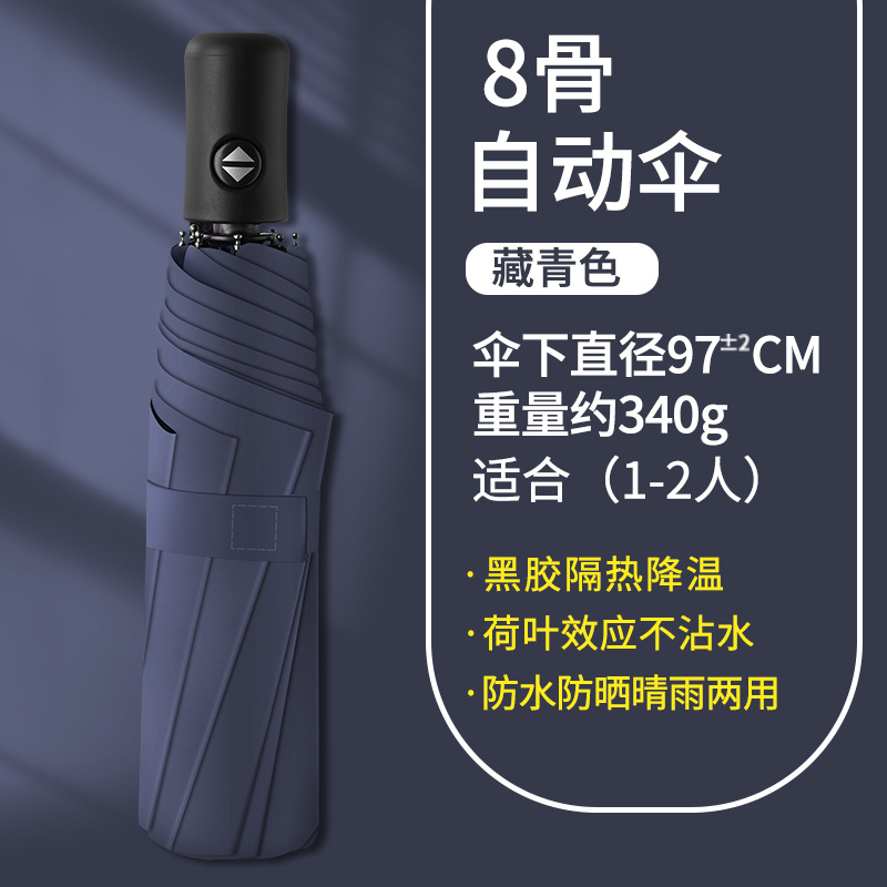 • 8 뼈 검은 접착제 자동 우산 "네이비"