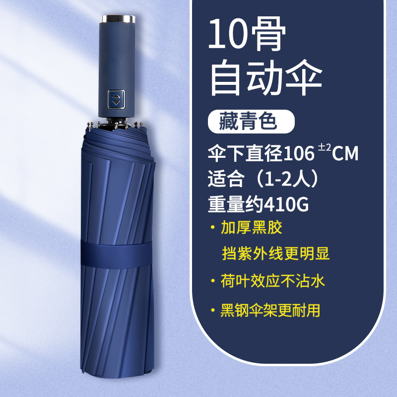 • 10 뼈 검은 접착제 간단한 자동 우산 "네이비"
