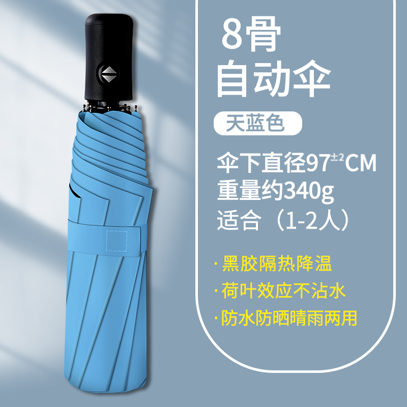 • 10 뼈 검은 접착제 간단한 자동 우산 "스카이 블루"