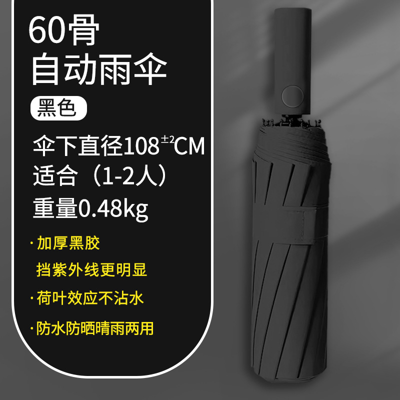 • 10 뼈 검정 접착제 간단 자동 우산 "검정"