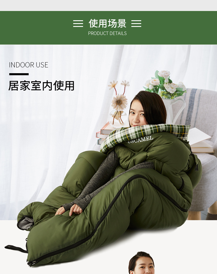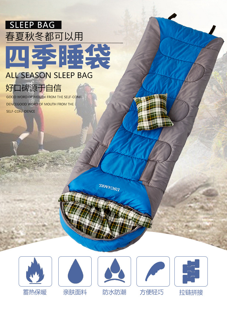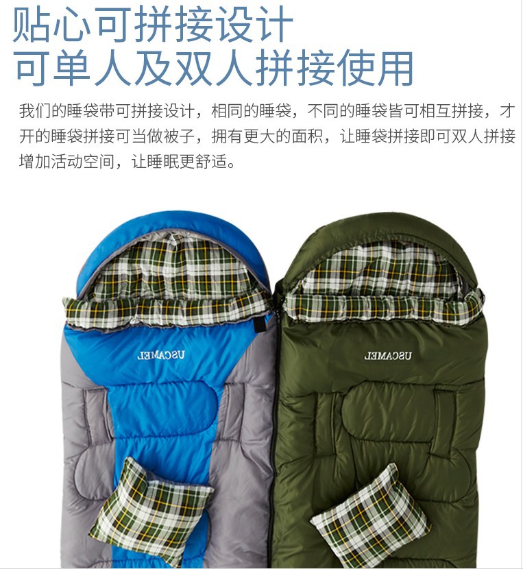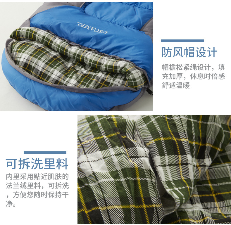 공장 방한 침낭 성인 야외 봄, 여름, 가을과 겨울 두꺼운 따뜻한 캠핑 휴대용 실내 캠핑