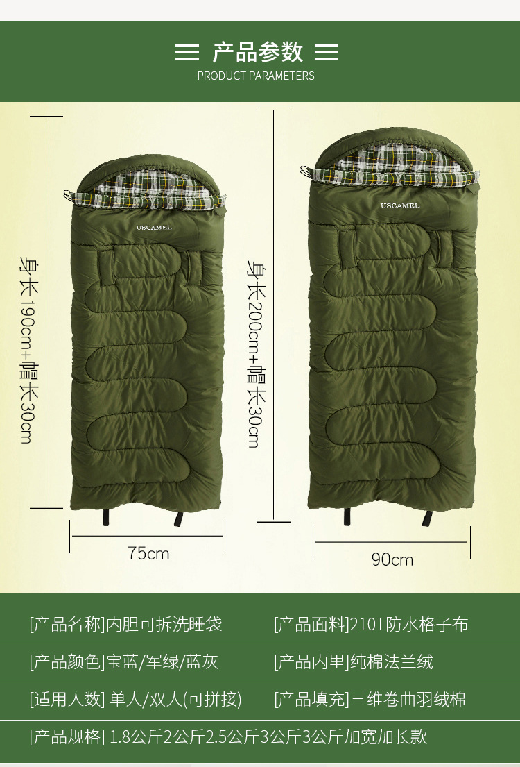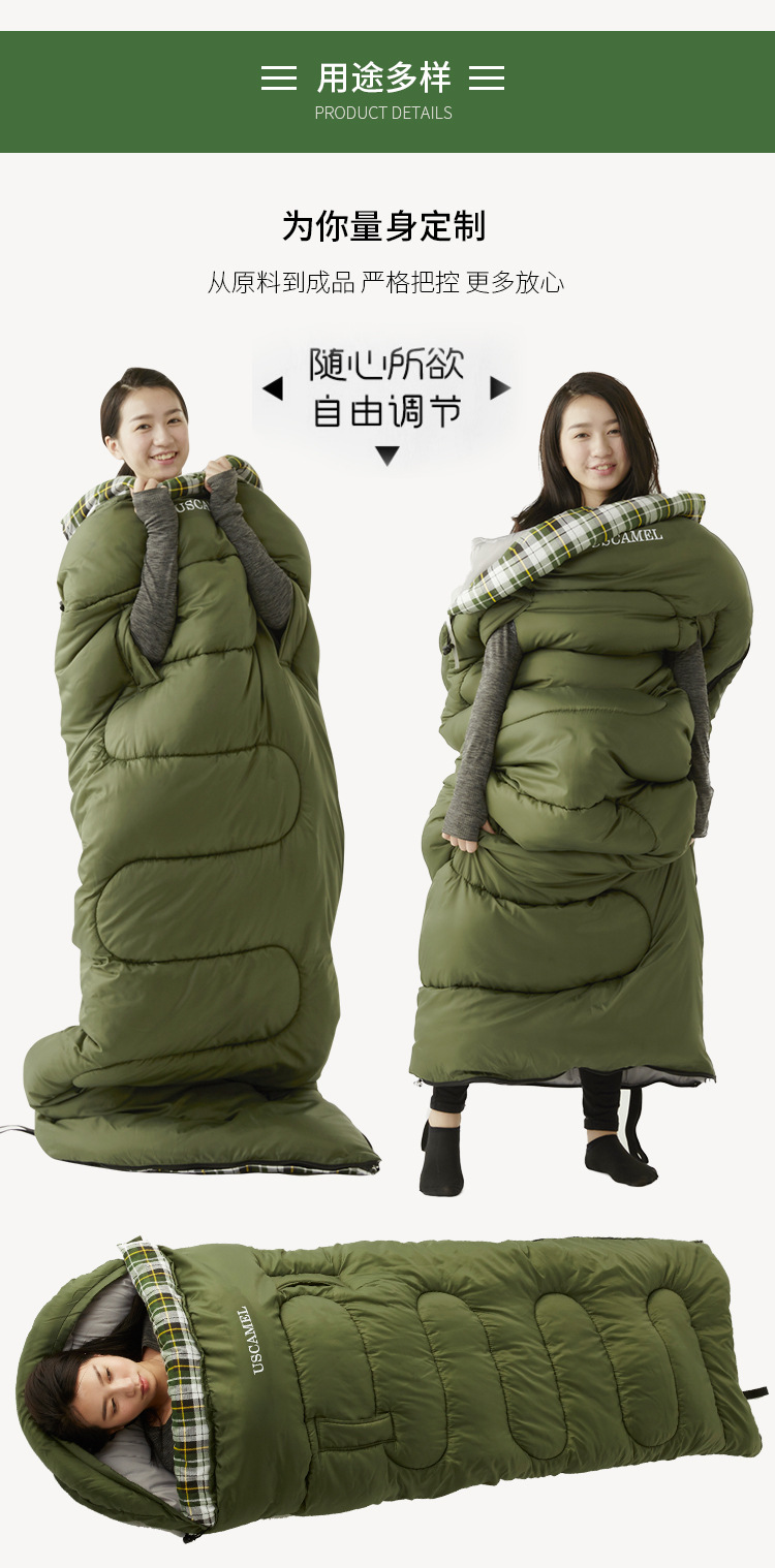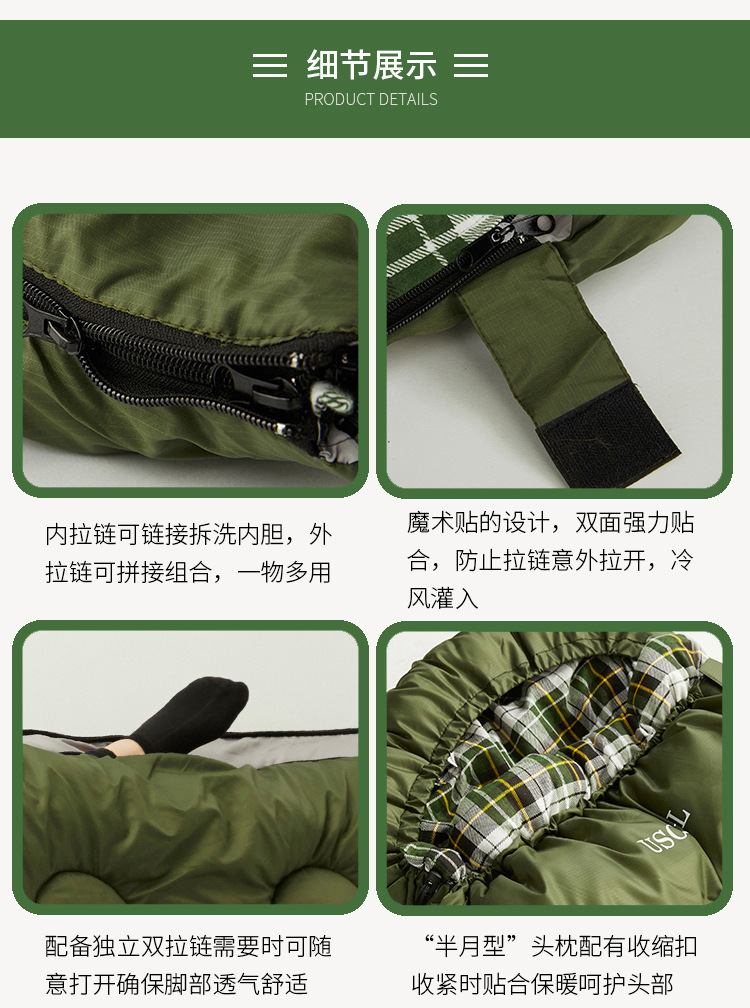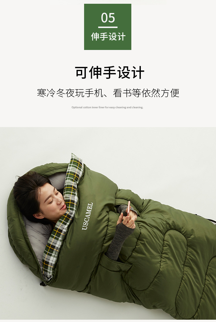 공장 방한 침낭 성인 야외 봄, 여름, 가을과 겨울 두꺼운 따뜻한 캠핑 휴대용 실내 캠핑