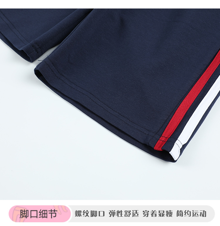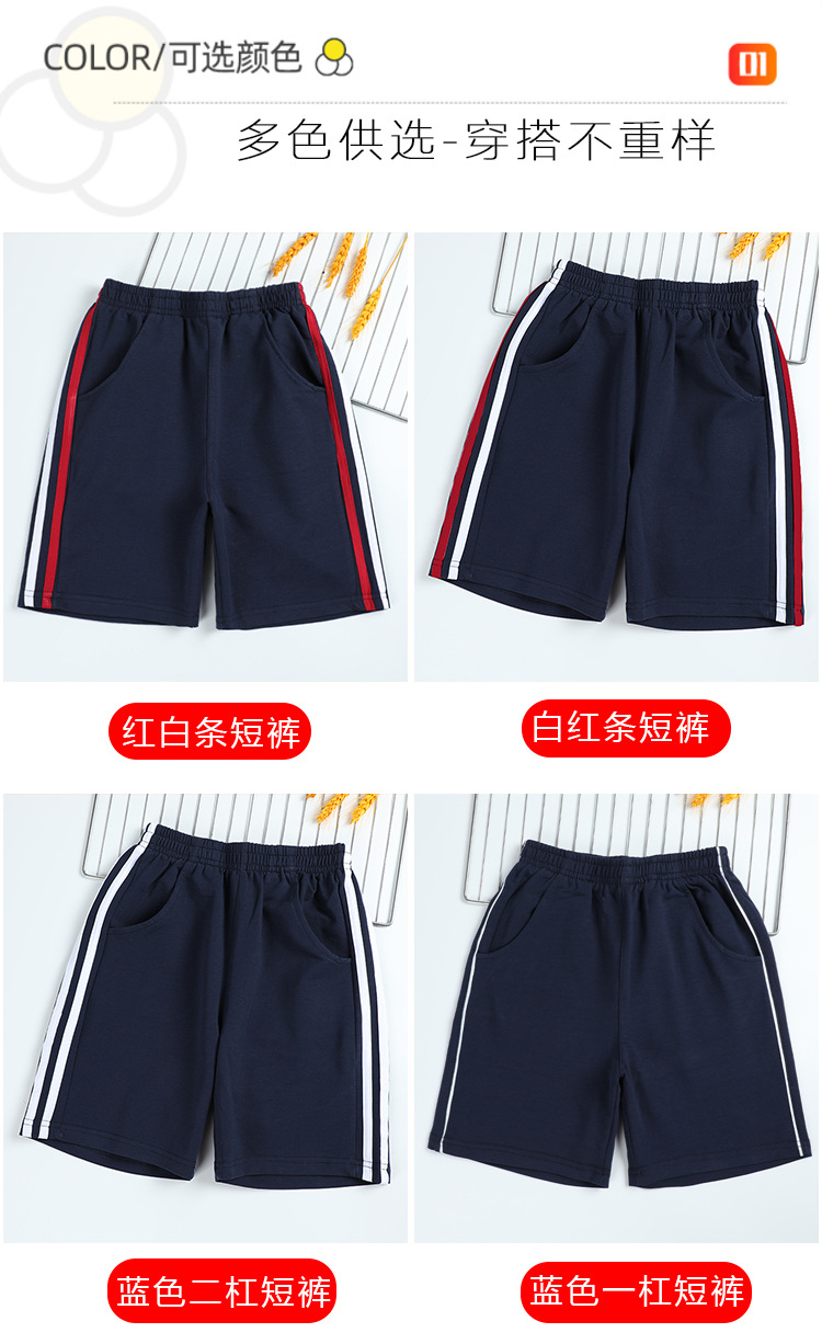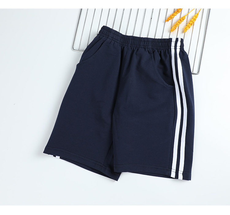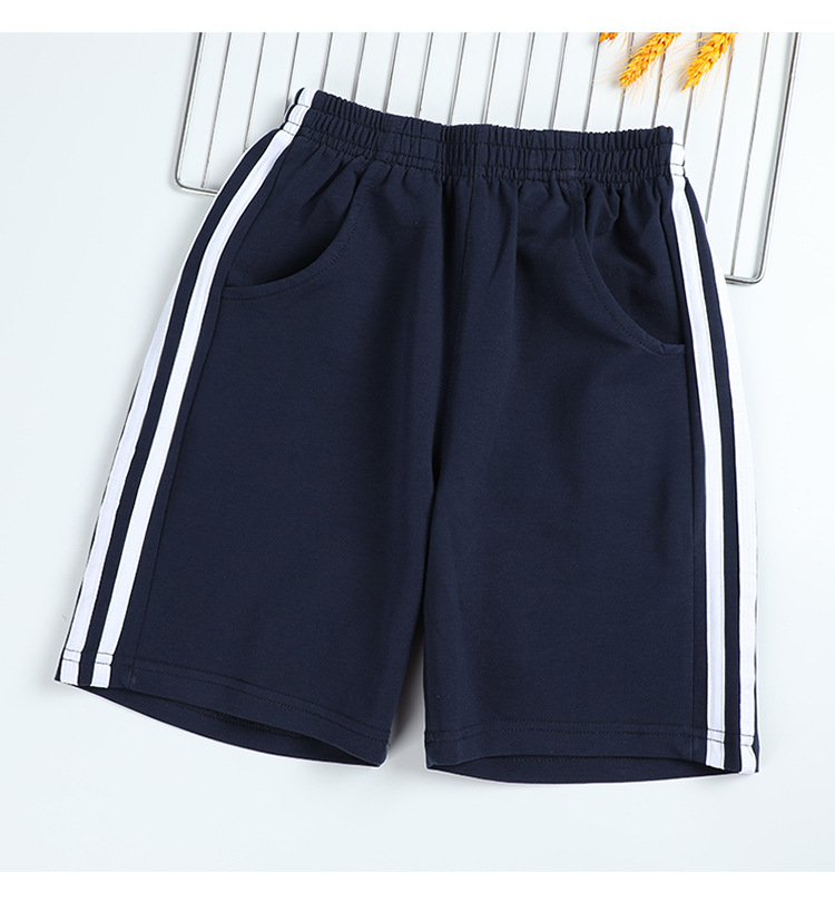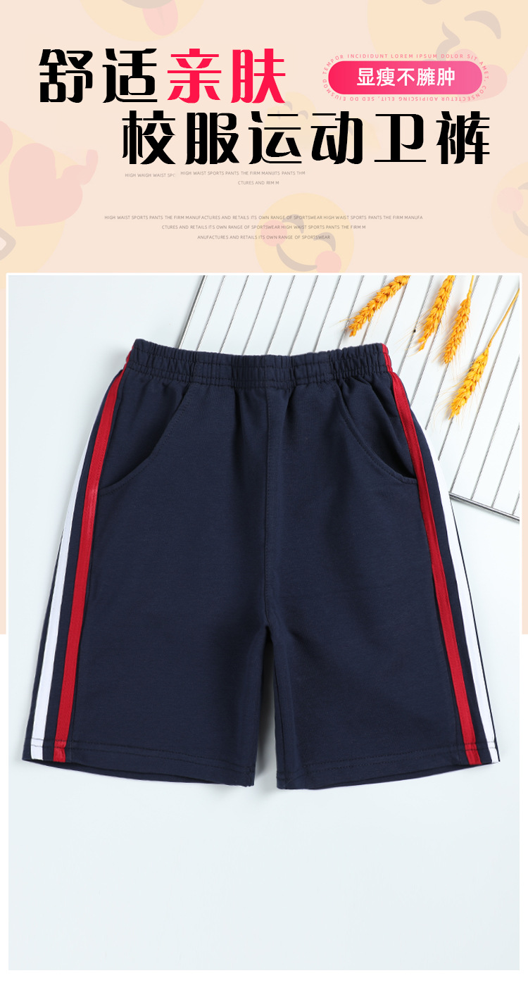 아동 의류 여름 교복 반바지 소년과 소녀 빨간색과 흰색 스트립 다크 블루 스포츠 바지 중학교 어린이 바지스토어 가기