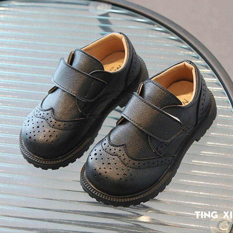 어린이 가죽 신발 2023 봄 새로운 두꺼운 밑창 소년 brogue 어린이 신발 한국의 부드러운 밑창 벨크로 아기 신발스토어 가기