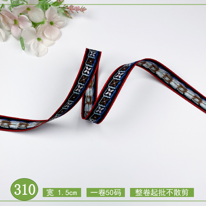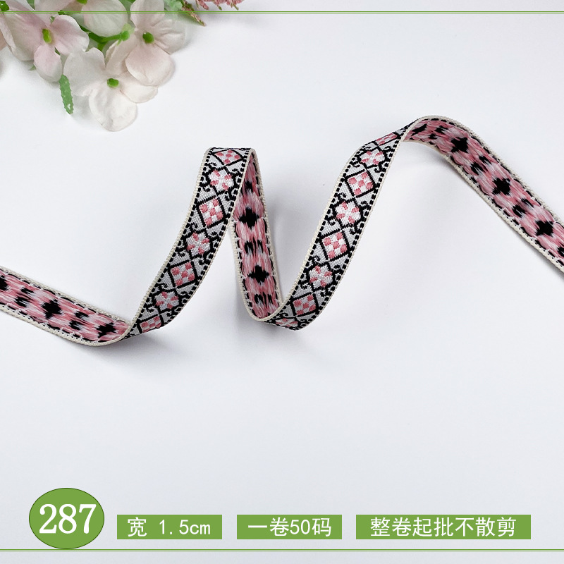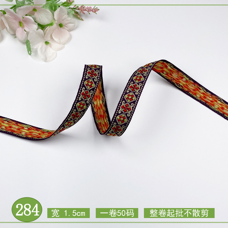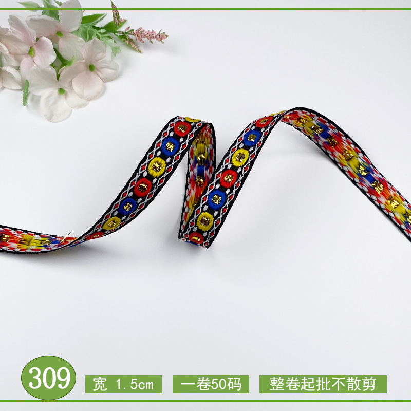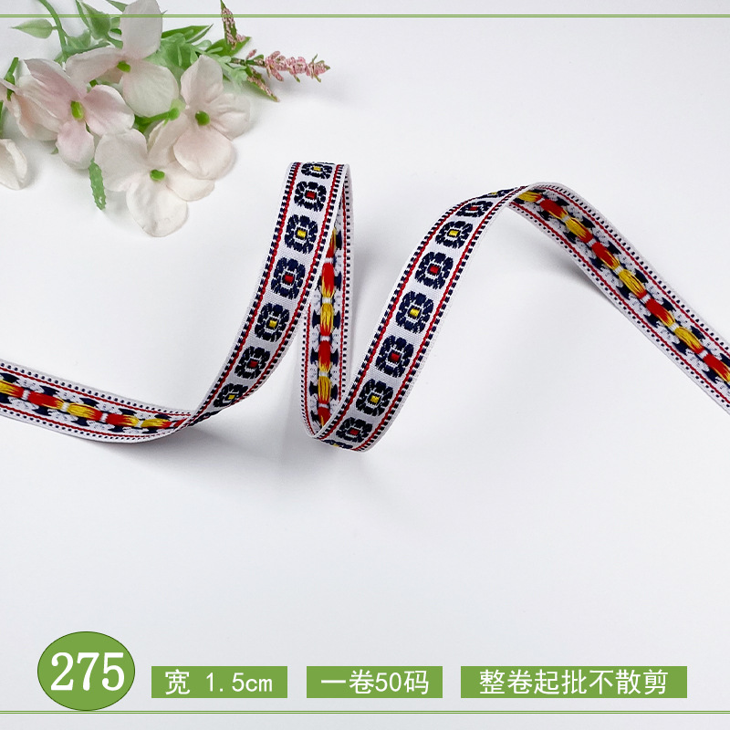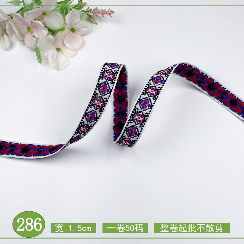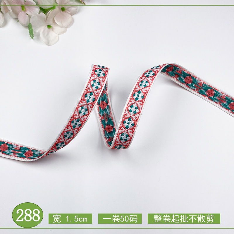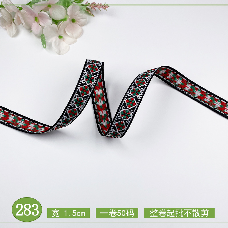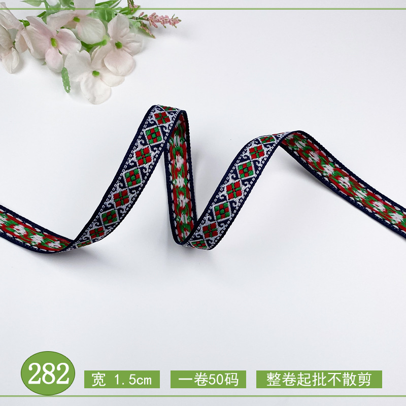 약속 국가 스타일 리본 액세서리 컬러 폴리 에스터 자카드 리본 레이스 의류 가방 홈 섬유 보석 도매스토어 가기