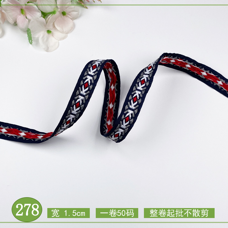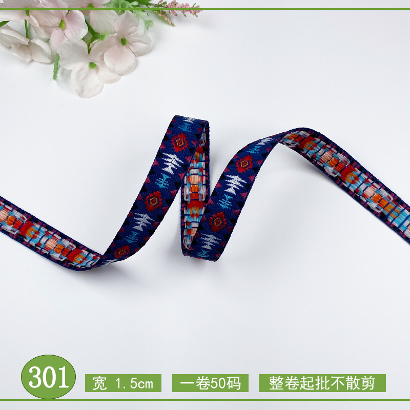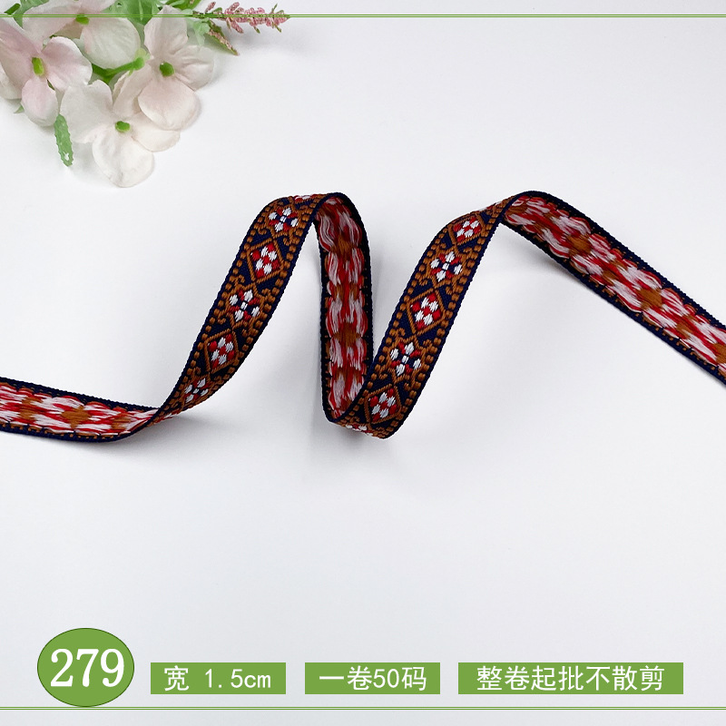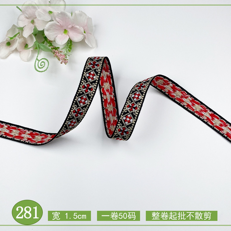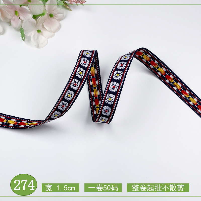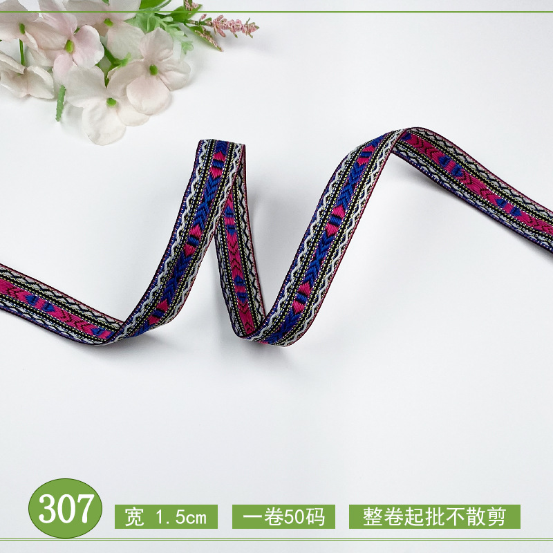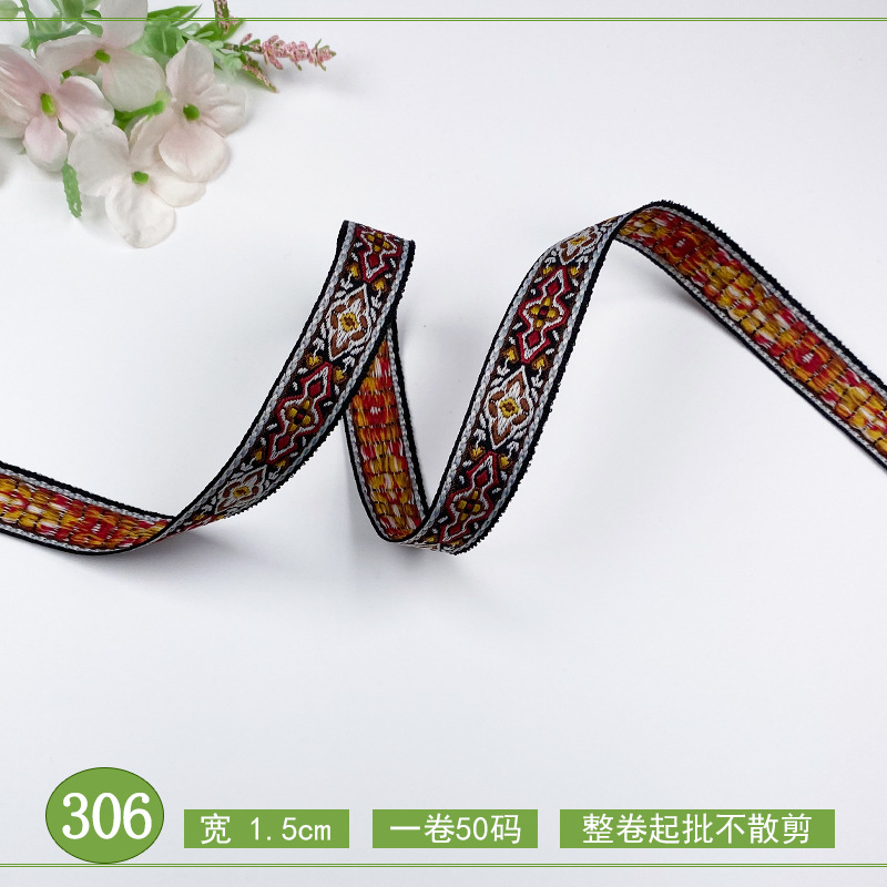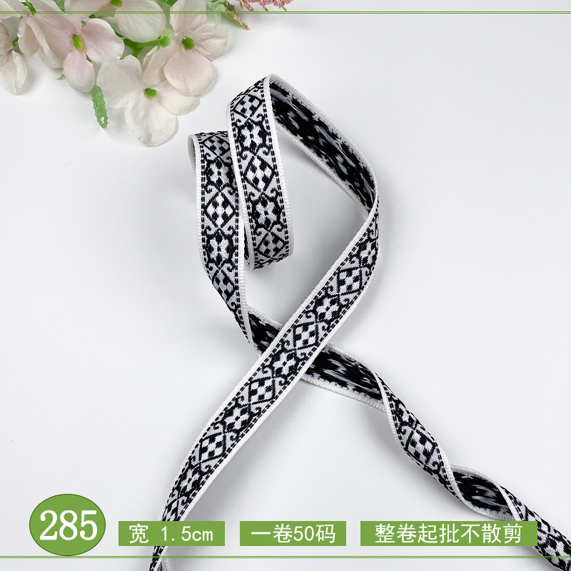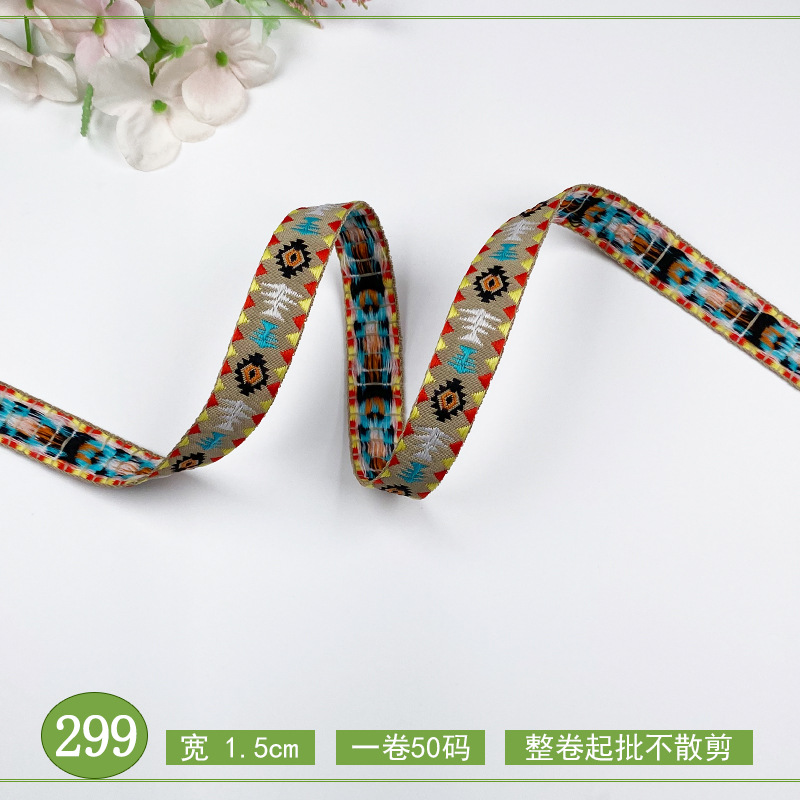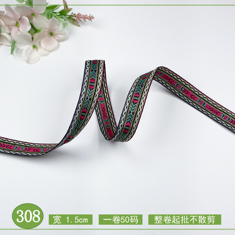 약속 국가 스타일 리본 액세서리 컬러 폴리 에스터 자카드 리본 레이스 의류 가방 홈 섬유 보석 도매스토어 가기