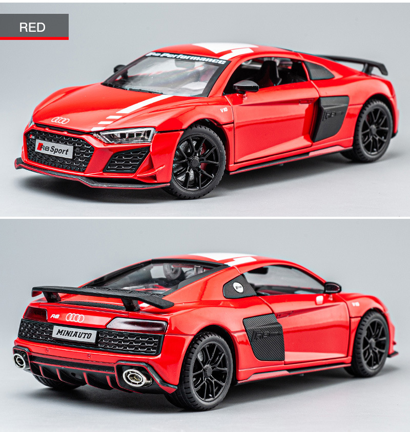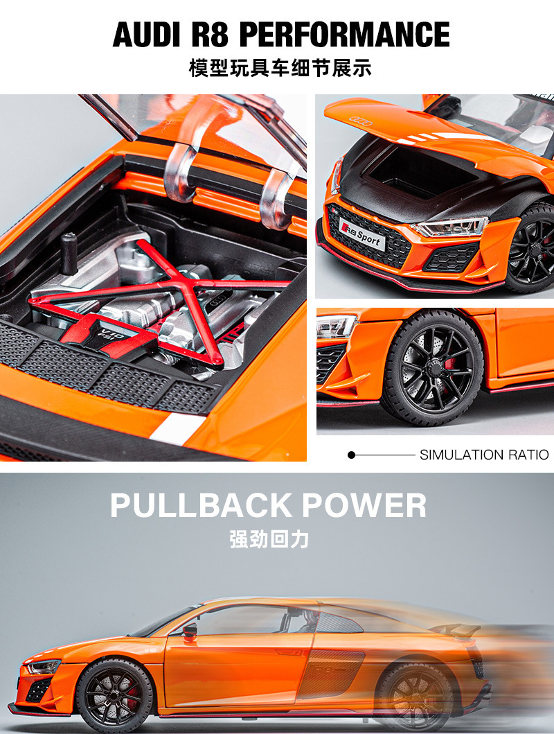 Jianyuan 합금 자동차 모델 Aodi R8 트랙 럭셔리카 로고 사운드와 라이트 백 보이 장난감 자동차 모델 장식품 컬렉션스토어 가기