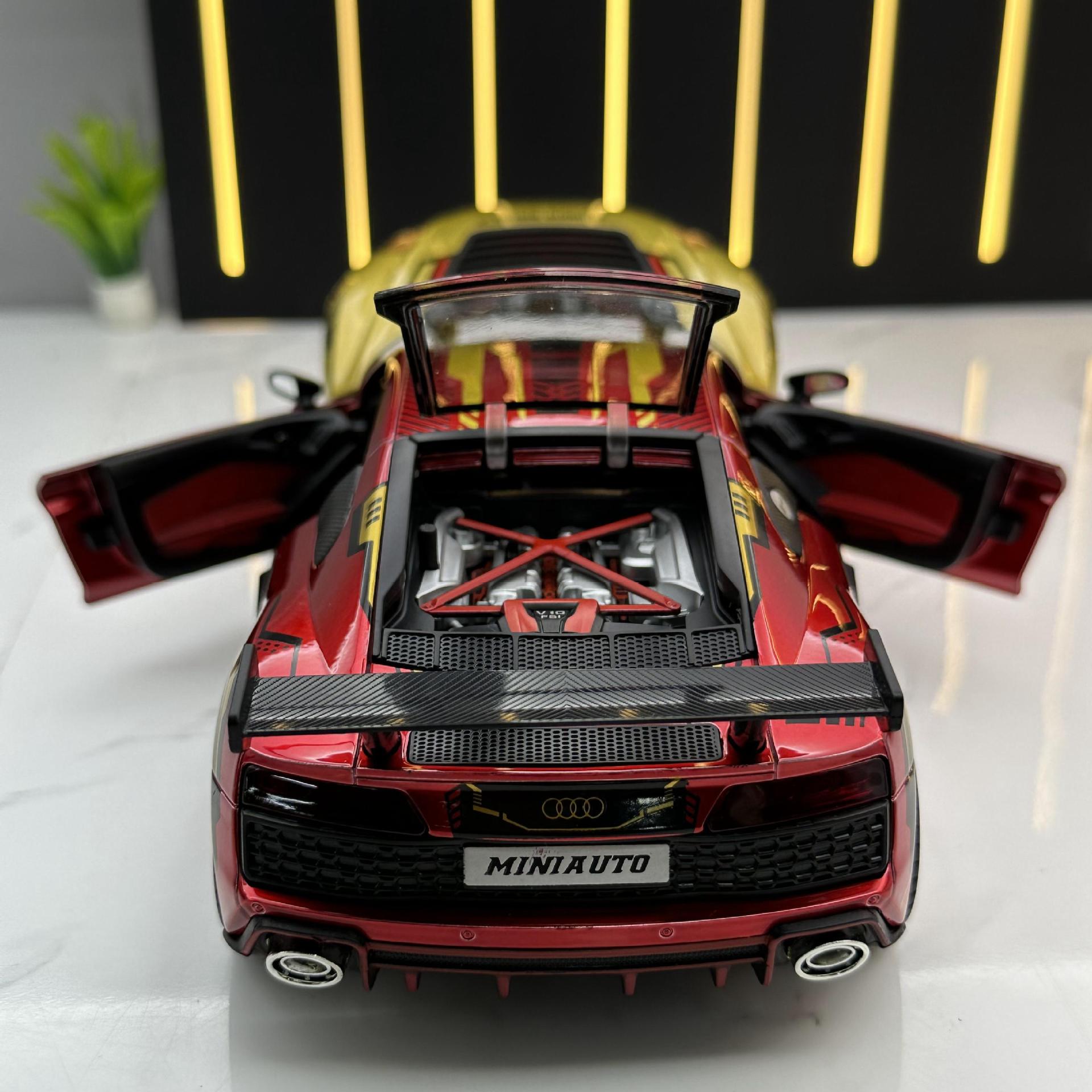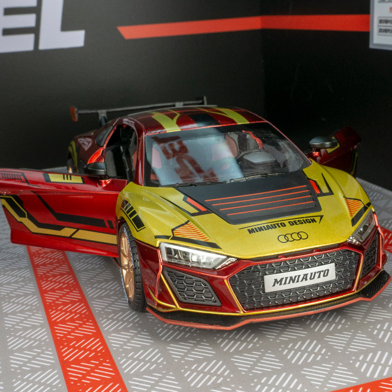 Jianyuan 합금 자동차 모델 Aodi R8 트랙 럭셔리카 로고 사운드와 라이트 백 보이 장난감 자동차 모델 장식품 컬렉션