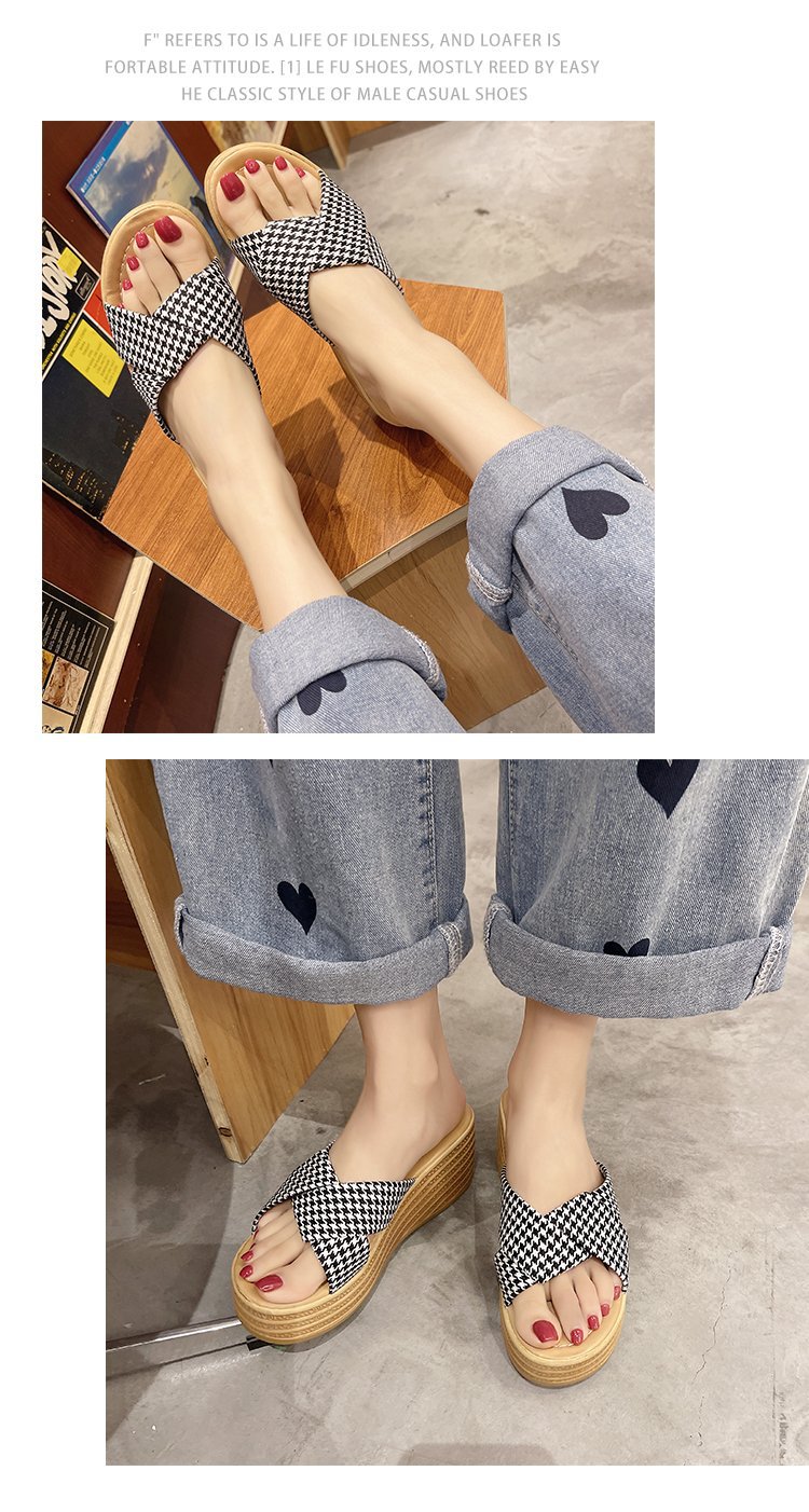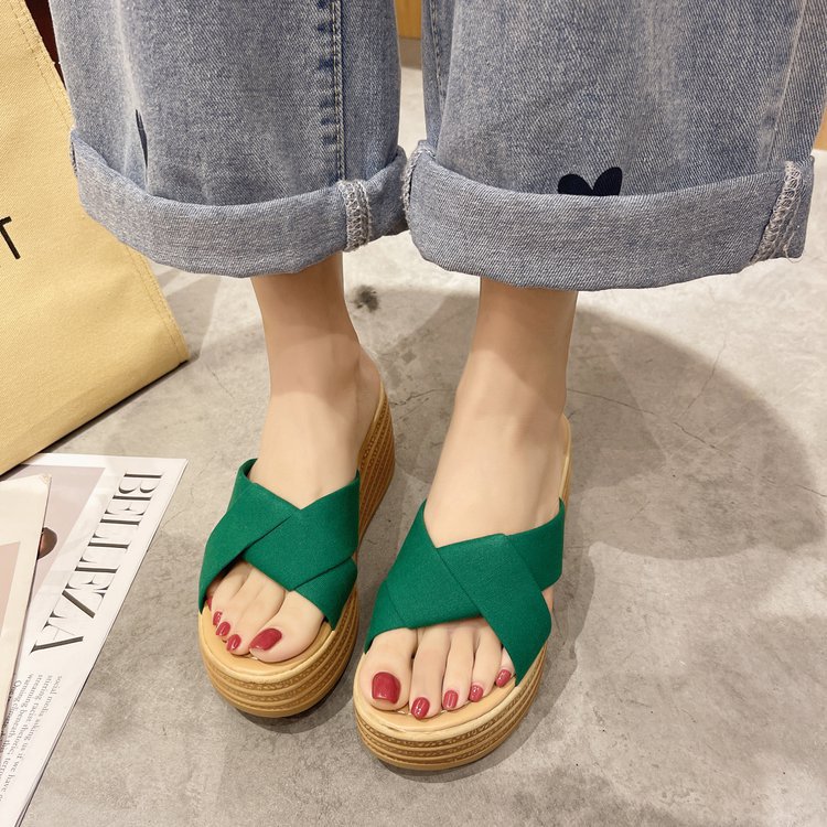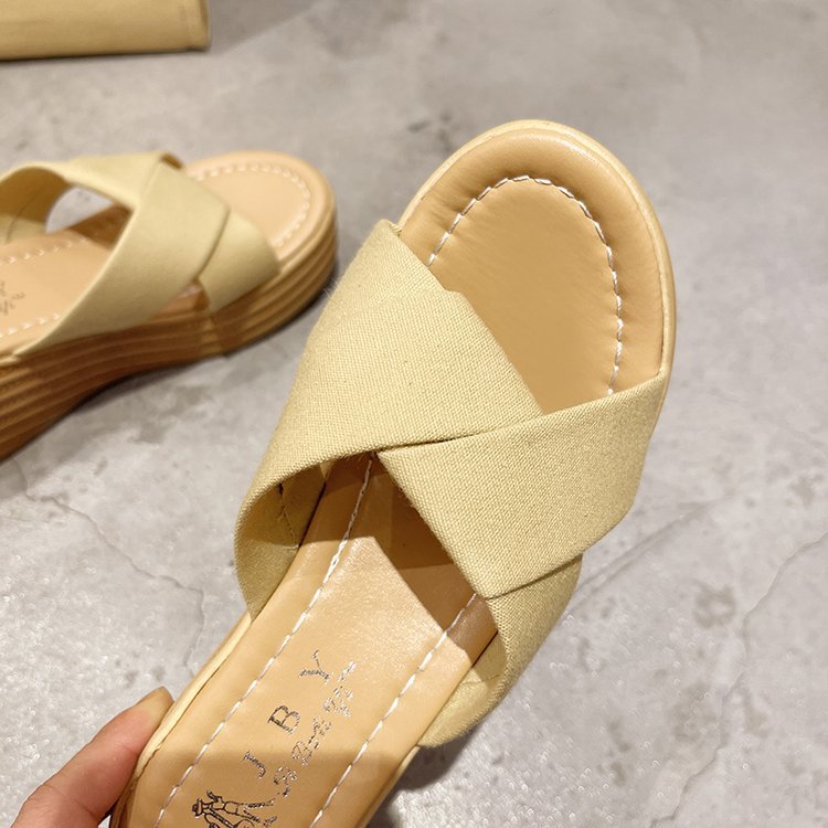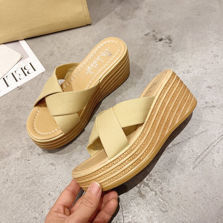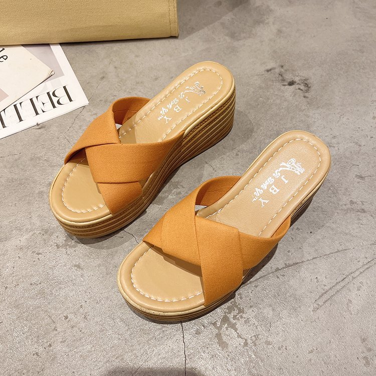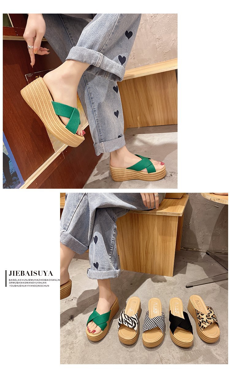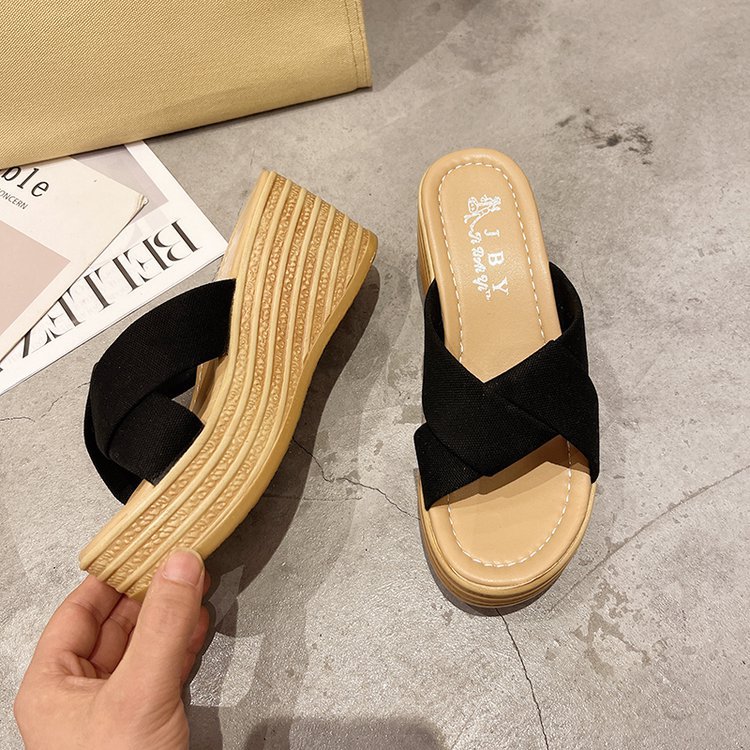 샌들과 슬리퍼 여성 2023 봄과 여름 새로운 패션 크로스 웨지 슬리퍼 하이힐 샌들 도매스토어 가기