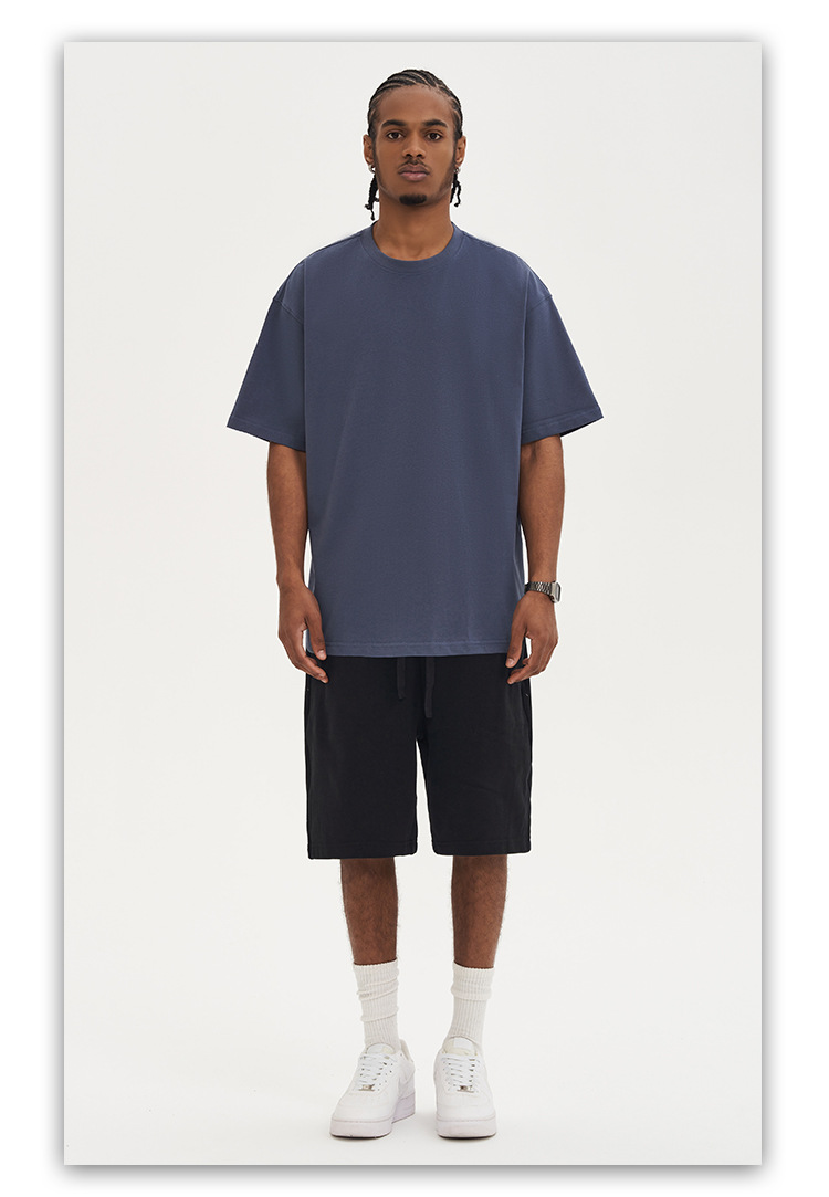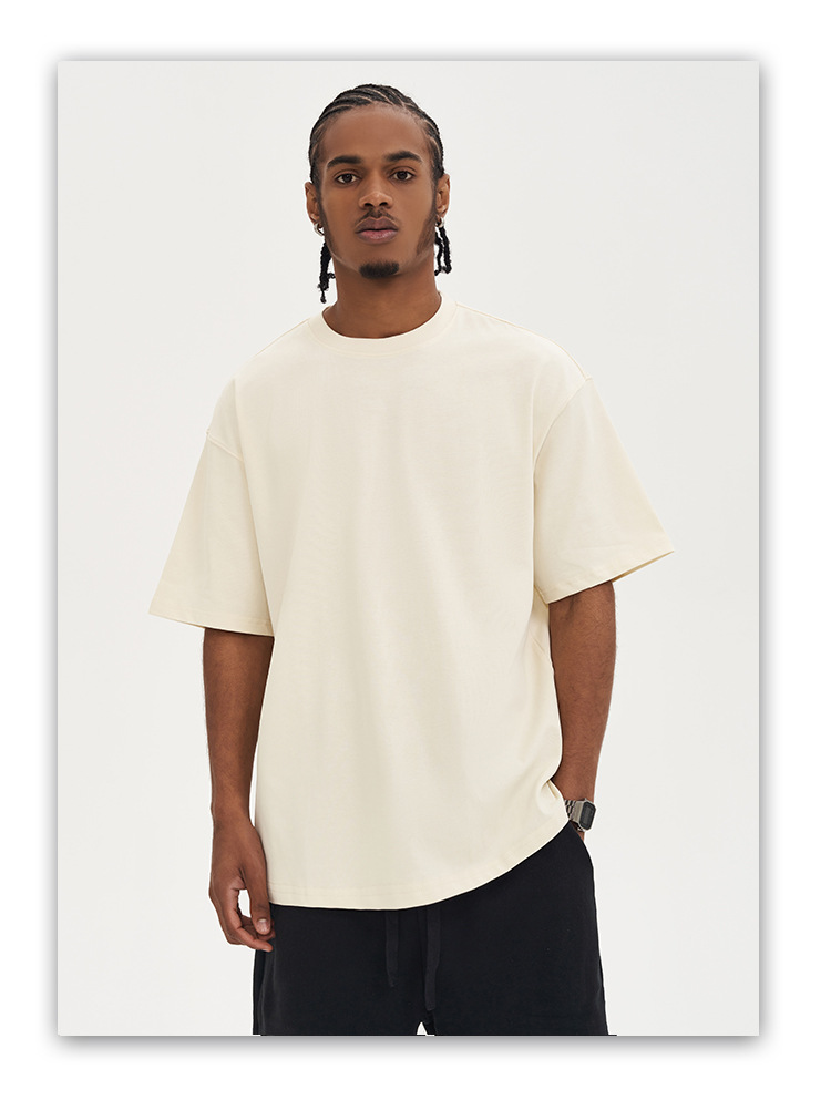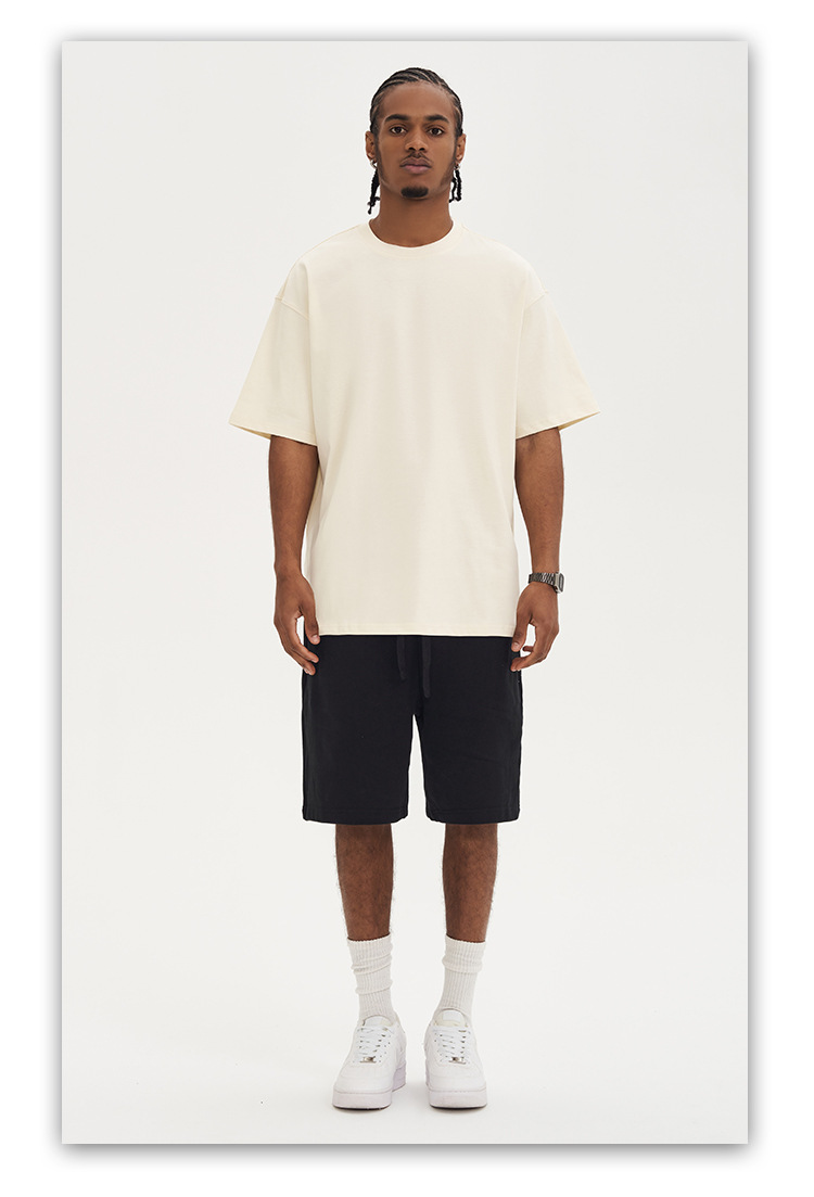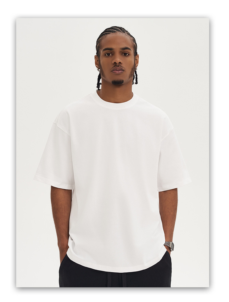 2025년 여름 신상 280G 루즈핏 무지 남성 순면 티셔츠, 내셔널 트렌드 화이트 티셔츠 반팔, FOG 컬러 매칭 아메리칸 스타일