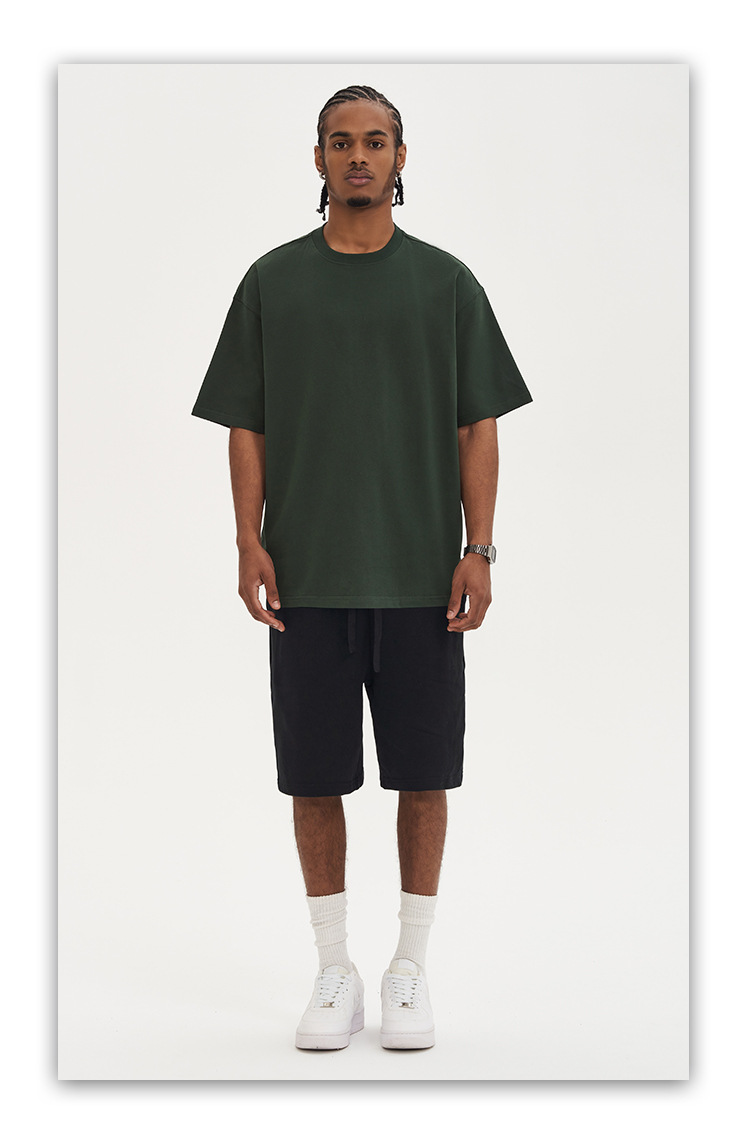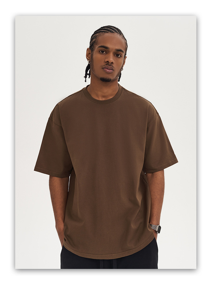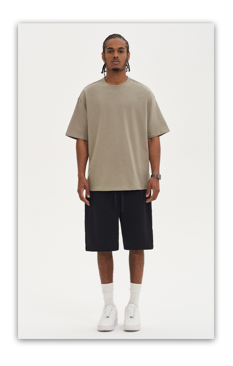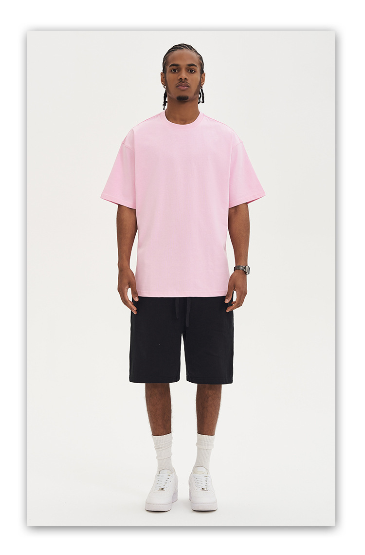 2025년 여름 신상 280G 루즈핏 무지 남성 순면 티셔츠, 내셔널 트렌드 화이트 티셔츠 반팔, FOG 컬러 매칭 아메리칸 스타일