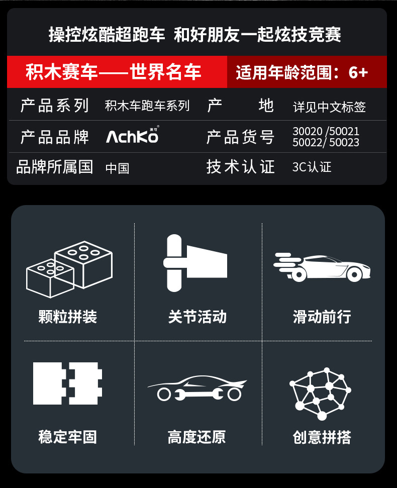 호주 빌딩 블록 8 그리드 레이싱 시리즈 어린이 조립 퍼즐 슈퍼 러닝 모델 자동차 장난감 장식품 제조 업체 도매스토어 가기