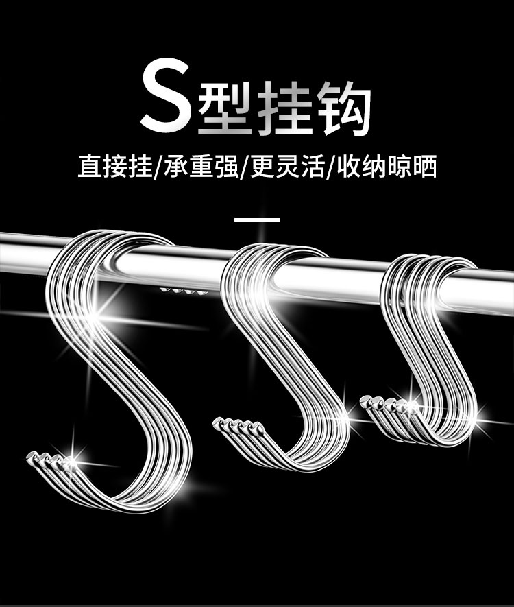 스테인리스 스틸 S자형 후크, 훈제육 걸이, 소시지 건조용, 주방 다용도 뾰족한 후크, 욕실 무타공 금속 단일 S자형 후크