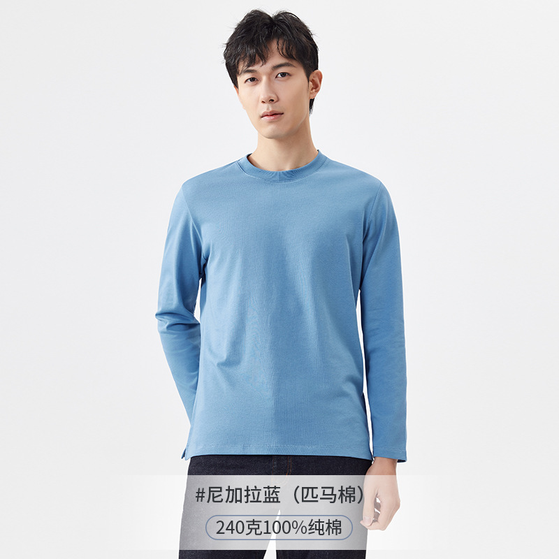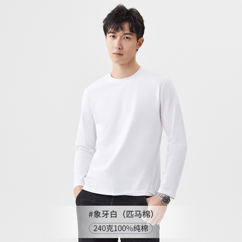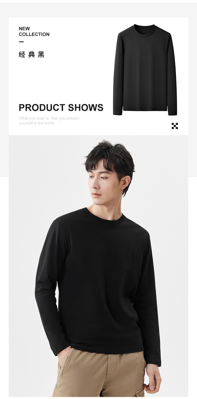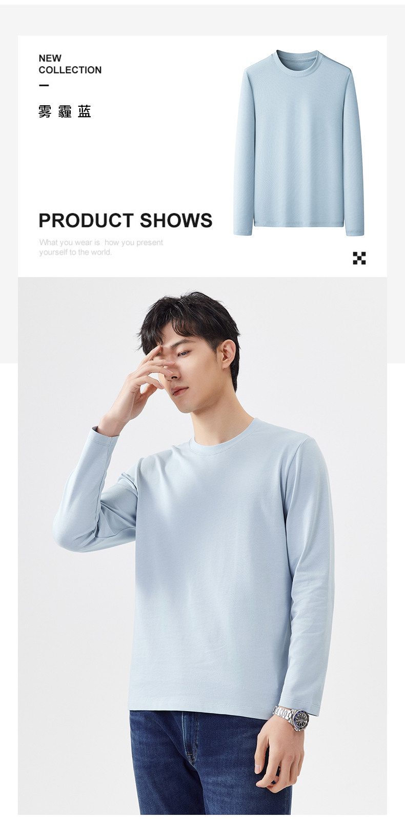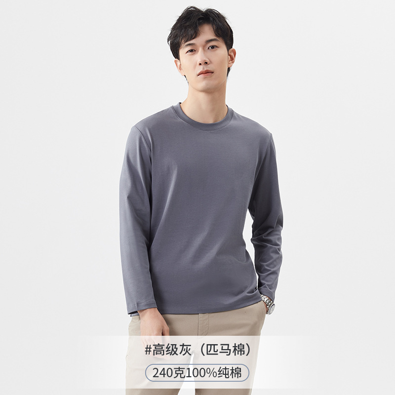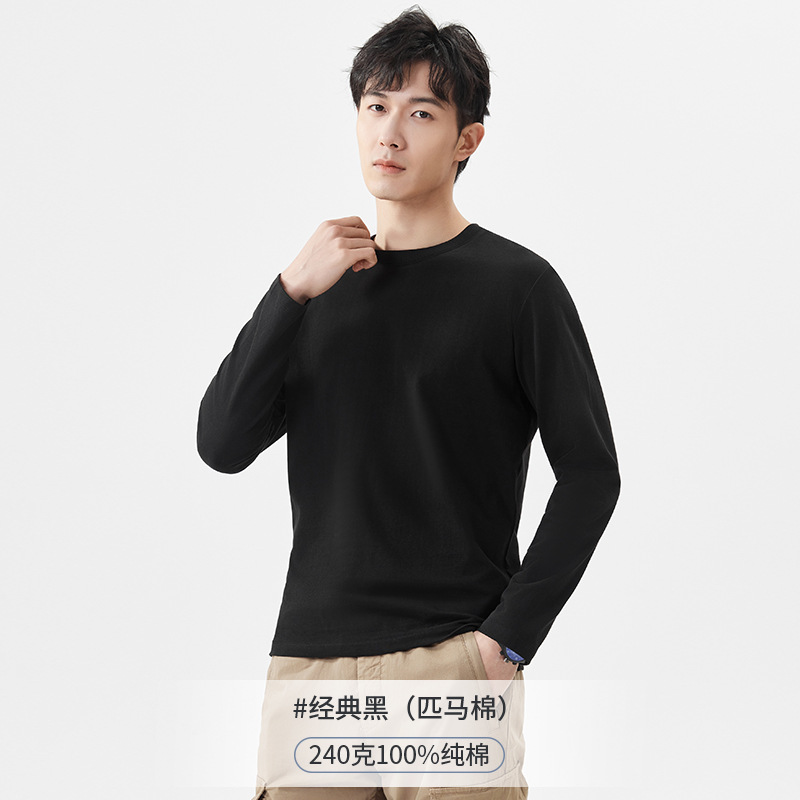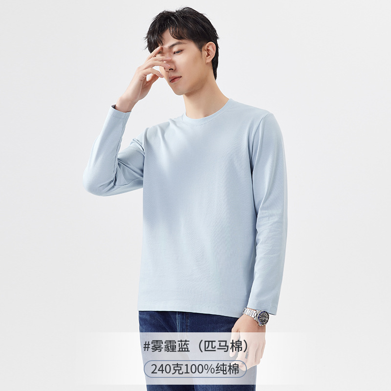 240g 고급 말 피마 코튼 크루 넥 긴팔 티셔츠 순면 단색 가을과 겨울 바닥 셔츠 남성용 티셔츠스토어 가기