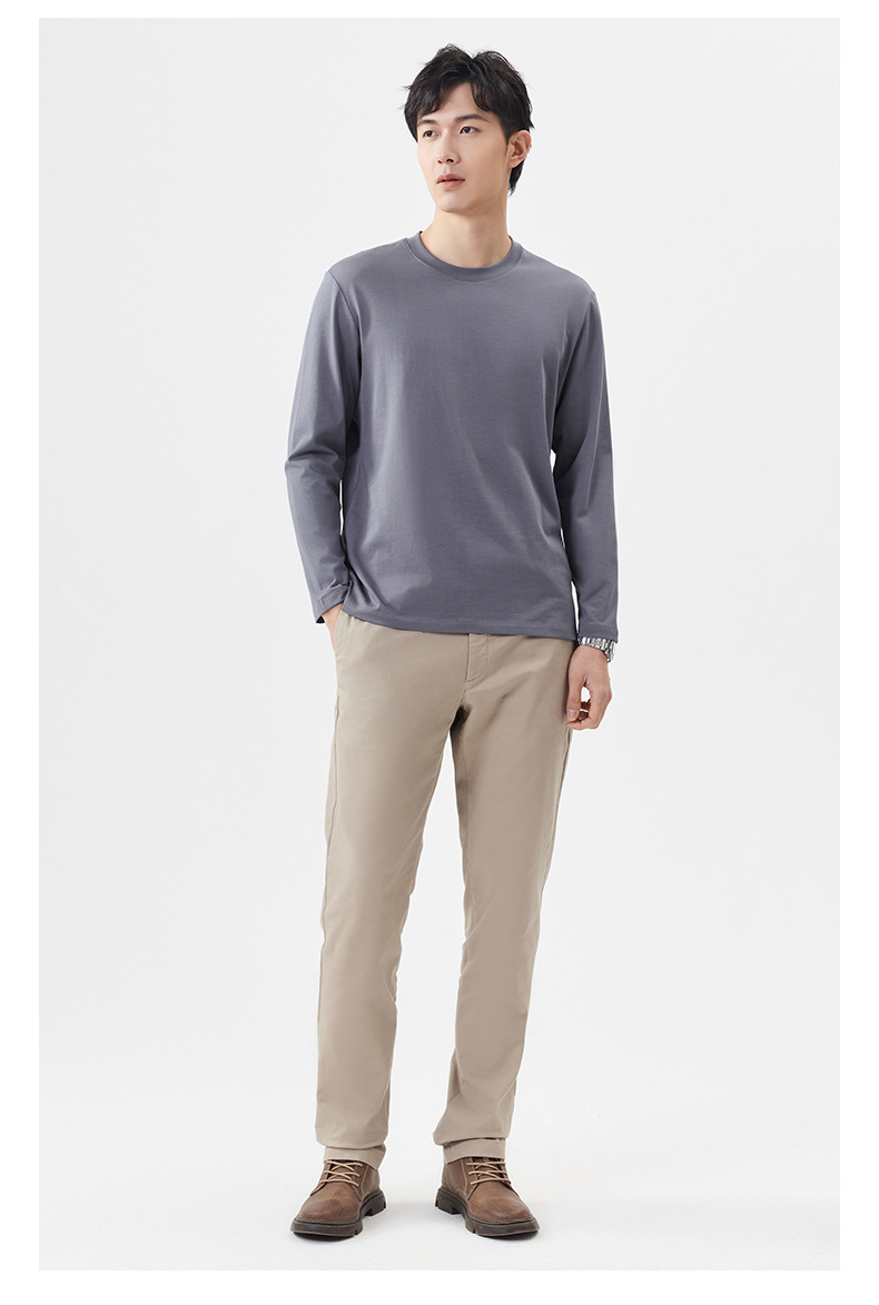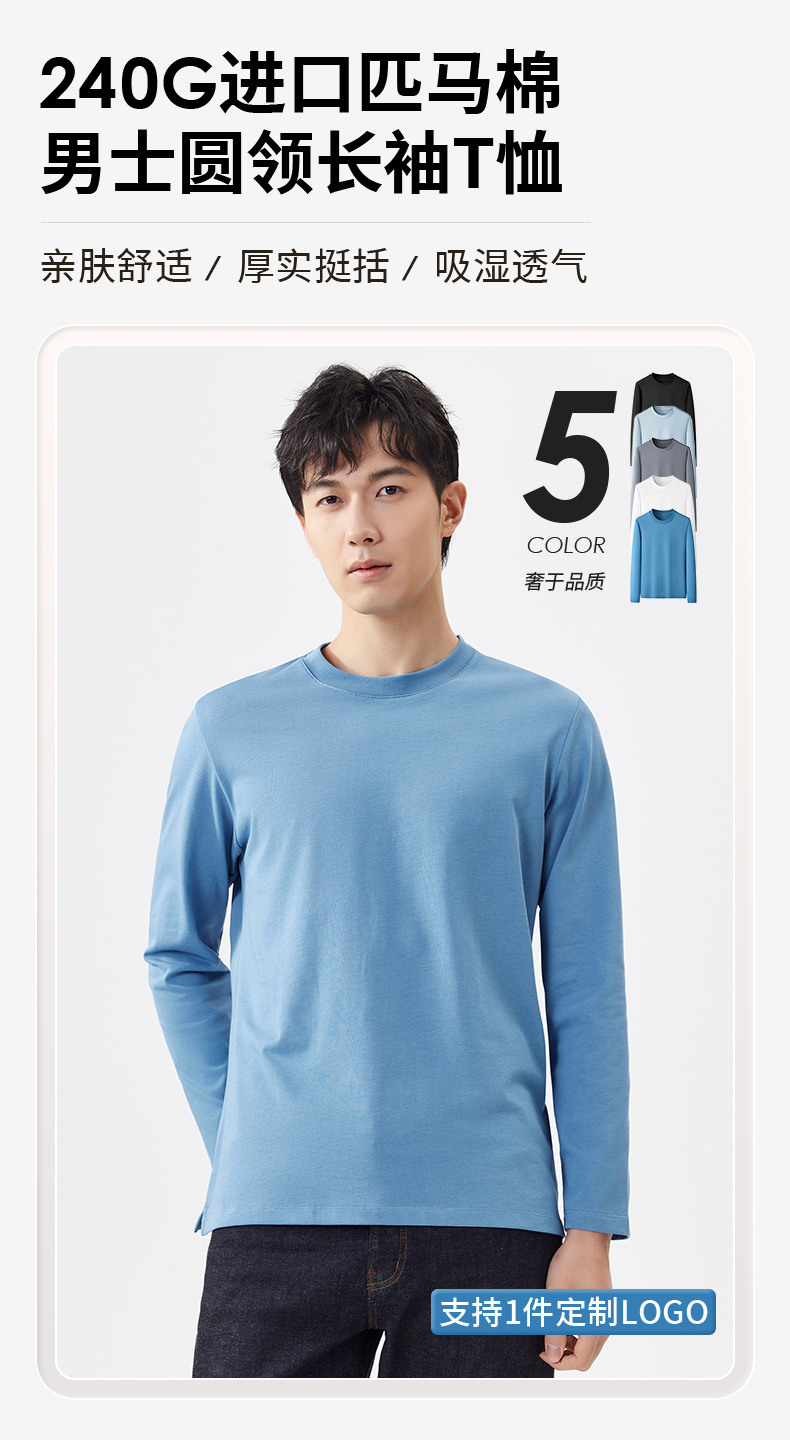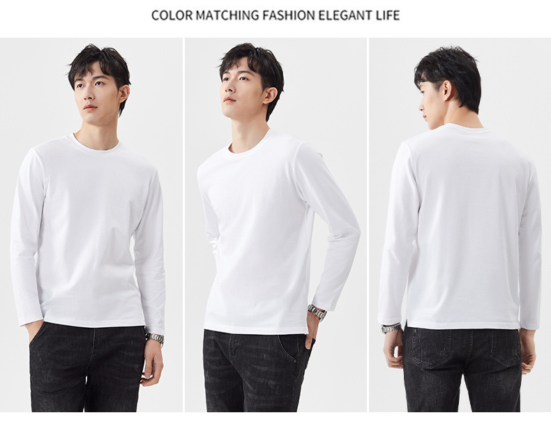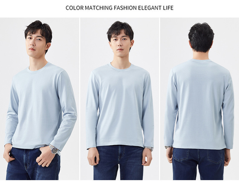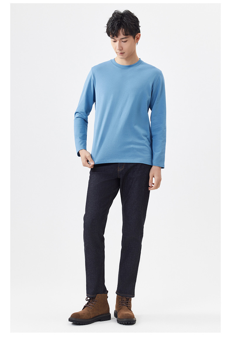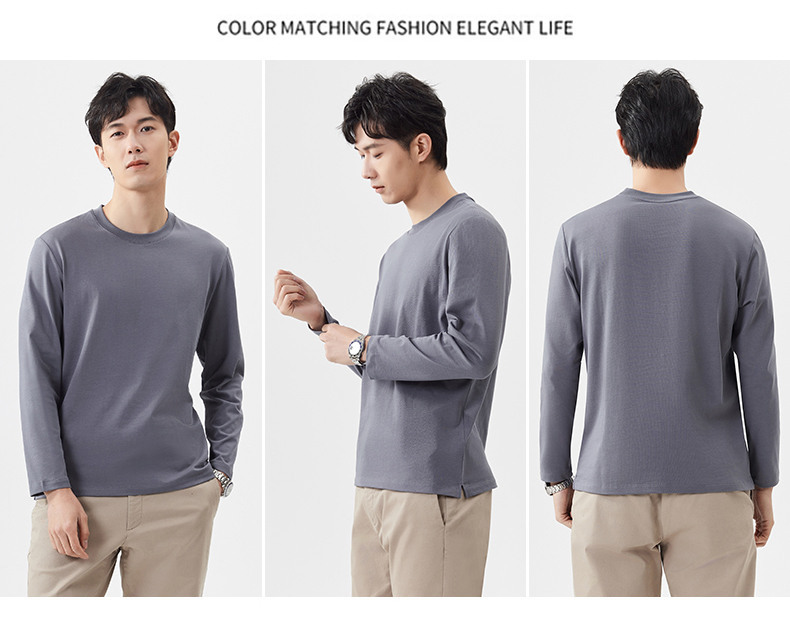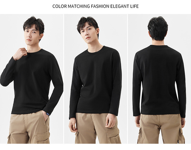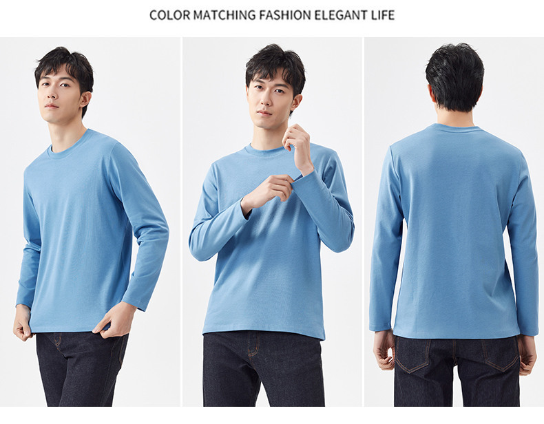 240g 고급 말 피마 코튼 크루 넥 긴팔 티셔츠 순면 단색 가을과 겨울 바닥 셔츠 남성용 티셔츠스토어 가기