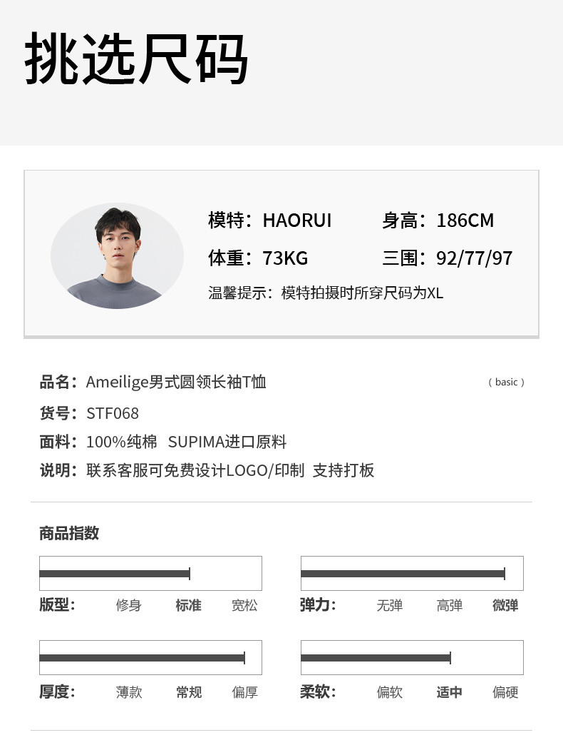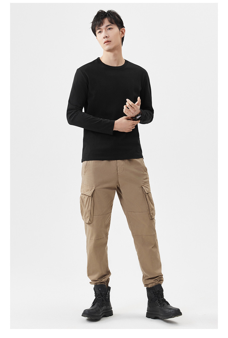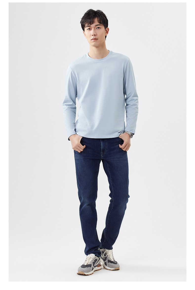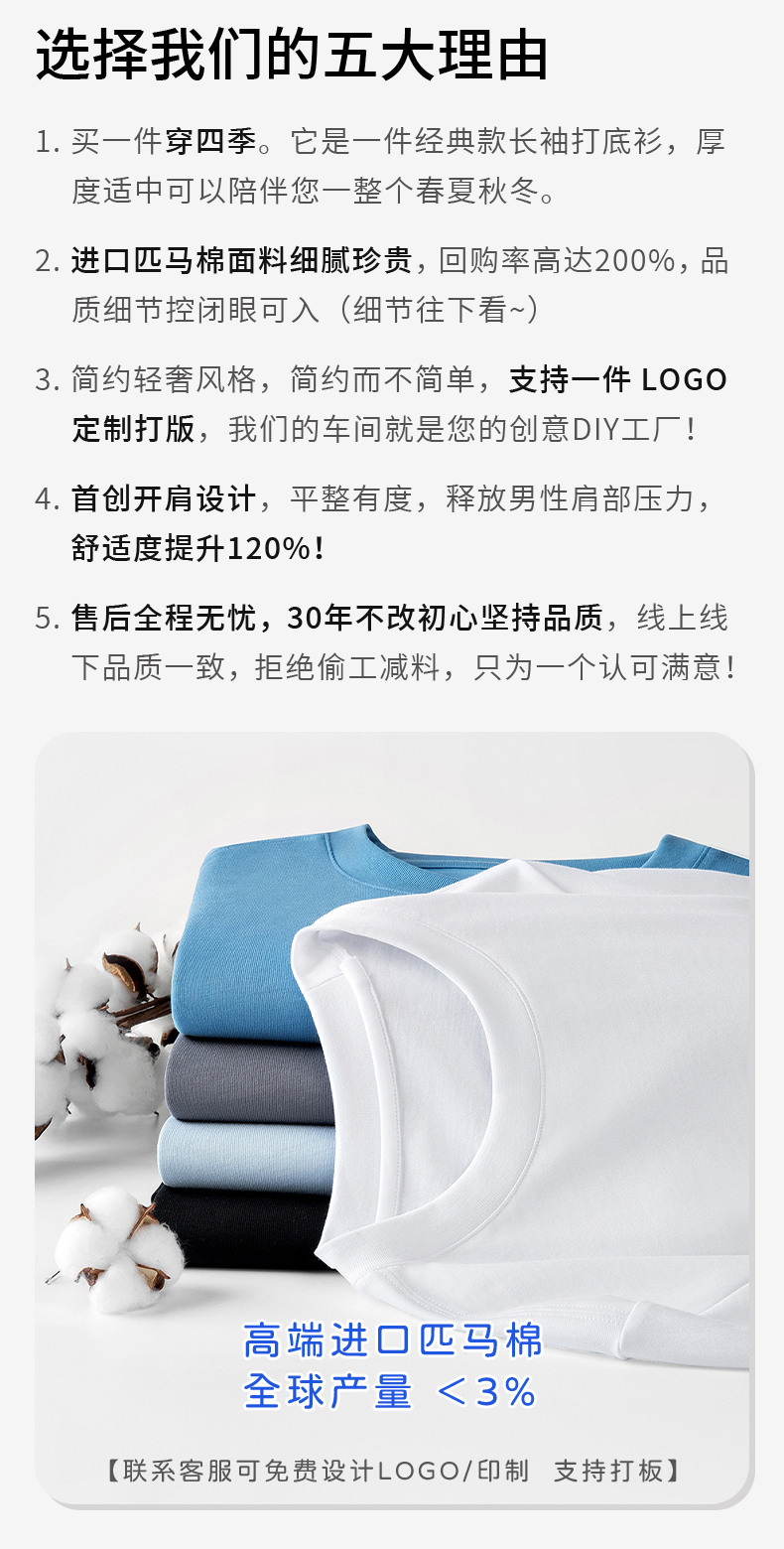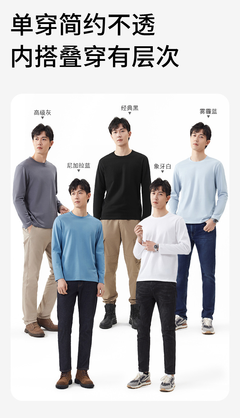 240g 고급 말 피마 코튼 크루 넥 긴팔 티셔츠 순면 단색 가을과 겨울 바닥 셔츠 남성용 티셔츠스토어 가기
