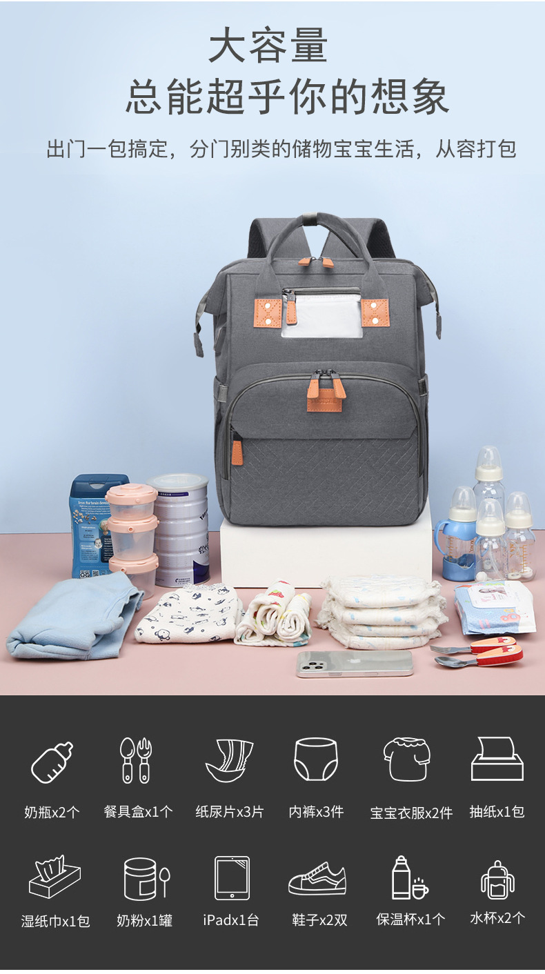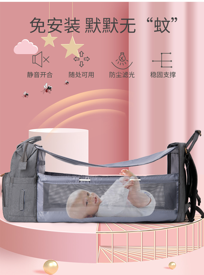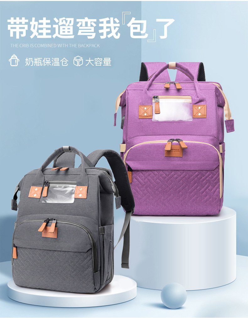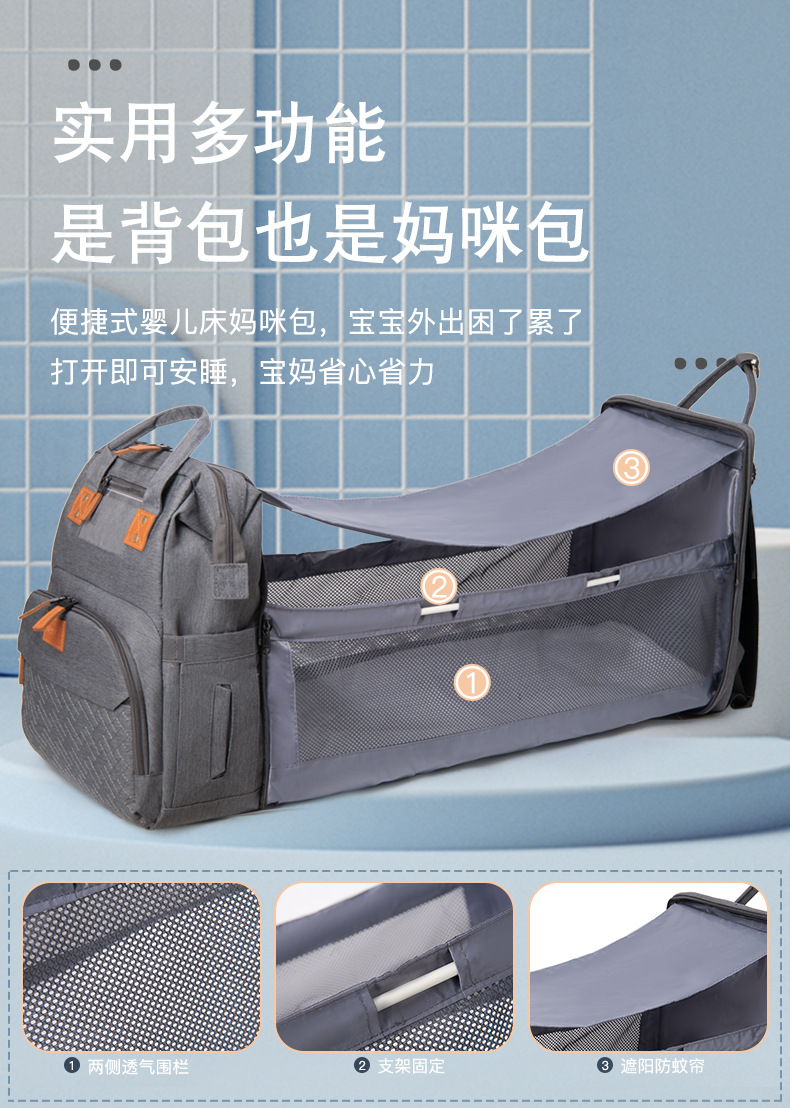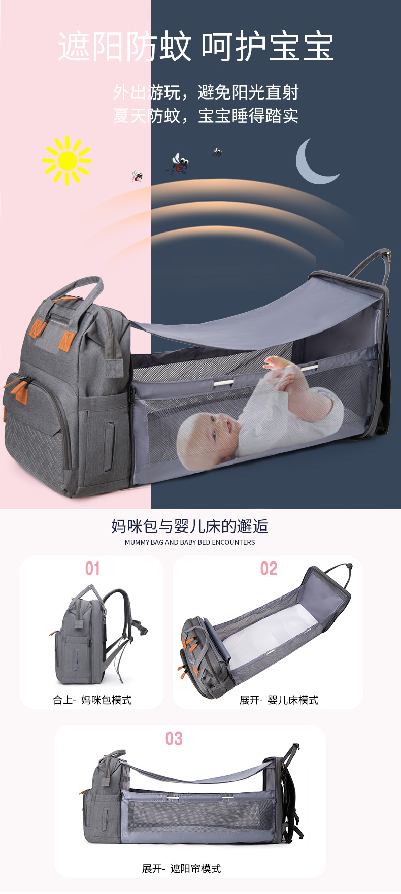 아기 침대 이중 목적 미라 가방 새로운 캐주얼 배낭 대용량 다목적 접이식 침대 휴대용 어머니 배낭