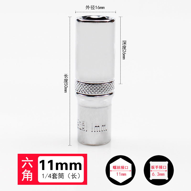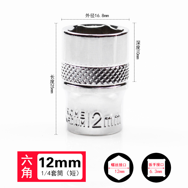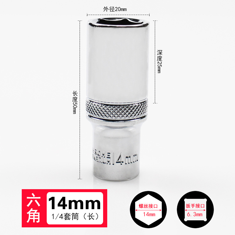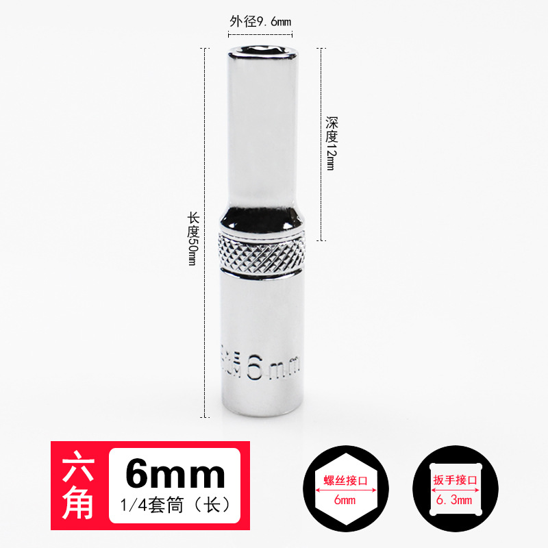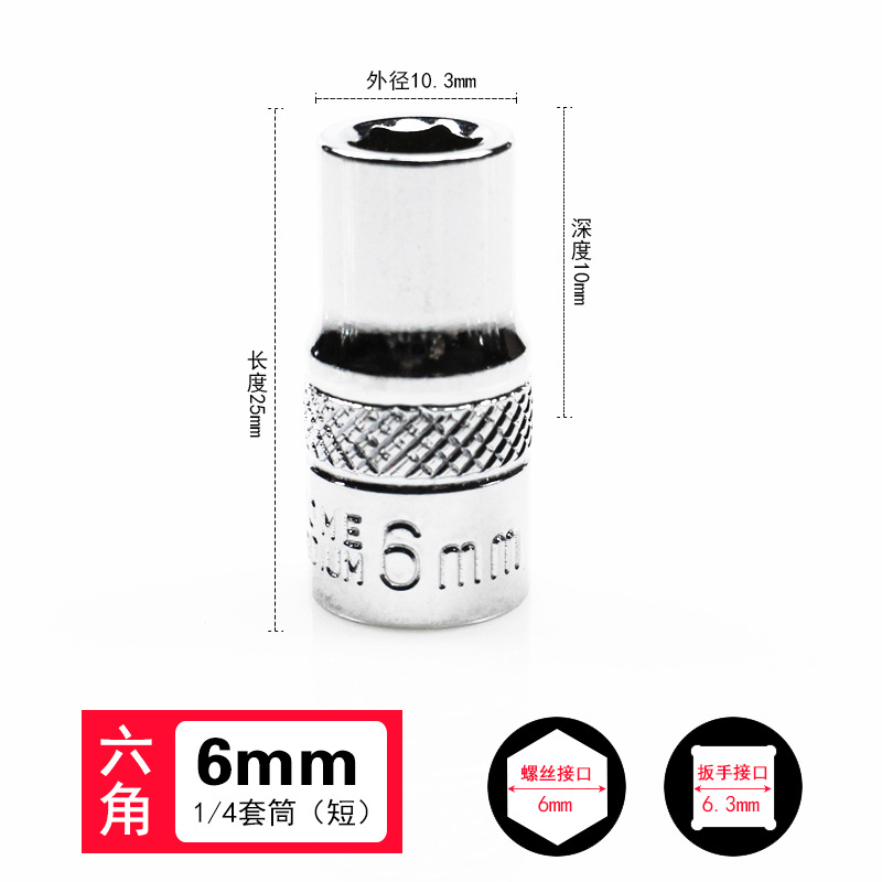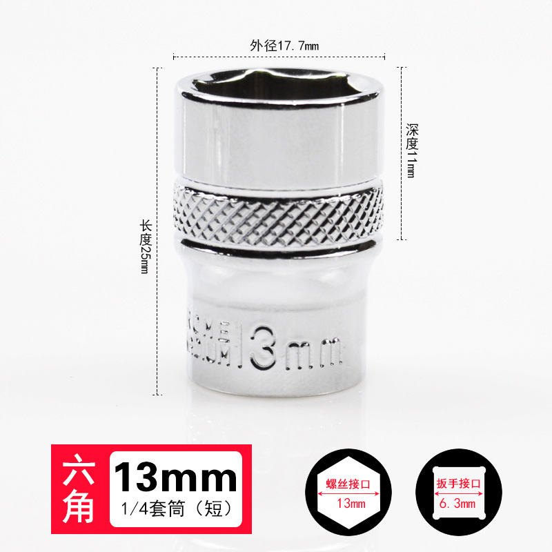 1/4 작은 플라이 외부 육각 소켓 6.3mm 미러 짧은 소켓 헤드 래칫 렌치 자동 수리 도구 슬리브 4-14mm스토어 가기