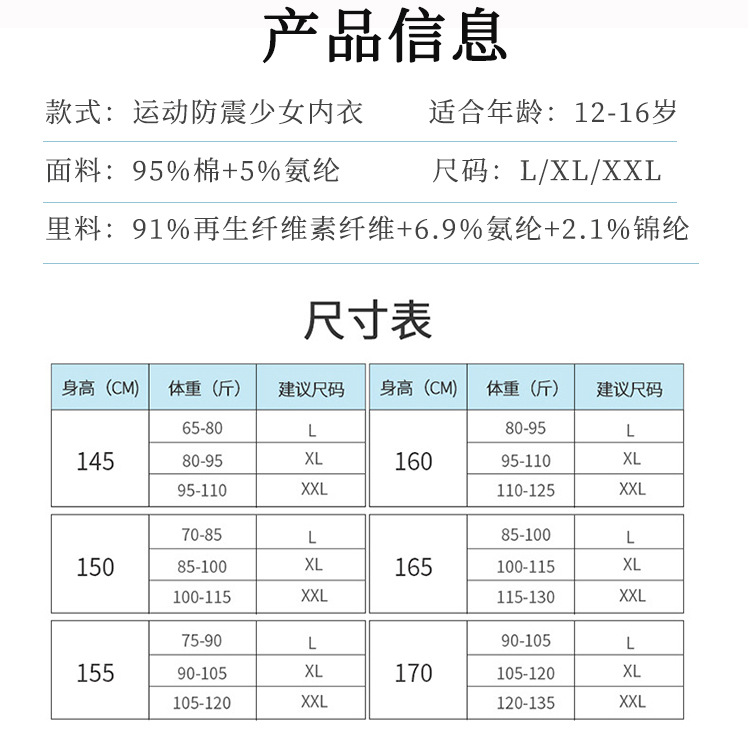 스포츠 속옷 여학생 중학생 발달 고정 컵 러닝 충격 방지 사춘기 고교생 10 대 브라