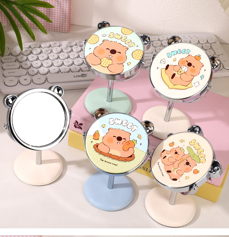 신형 수달 모양 탁상 거울 학생 여성용 가정용 탁상용 단면 거울 각도 조절 가능 알루미늄 탁상 거울