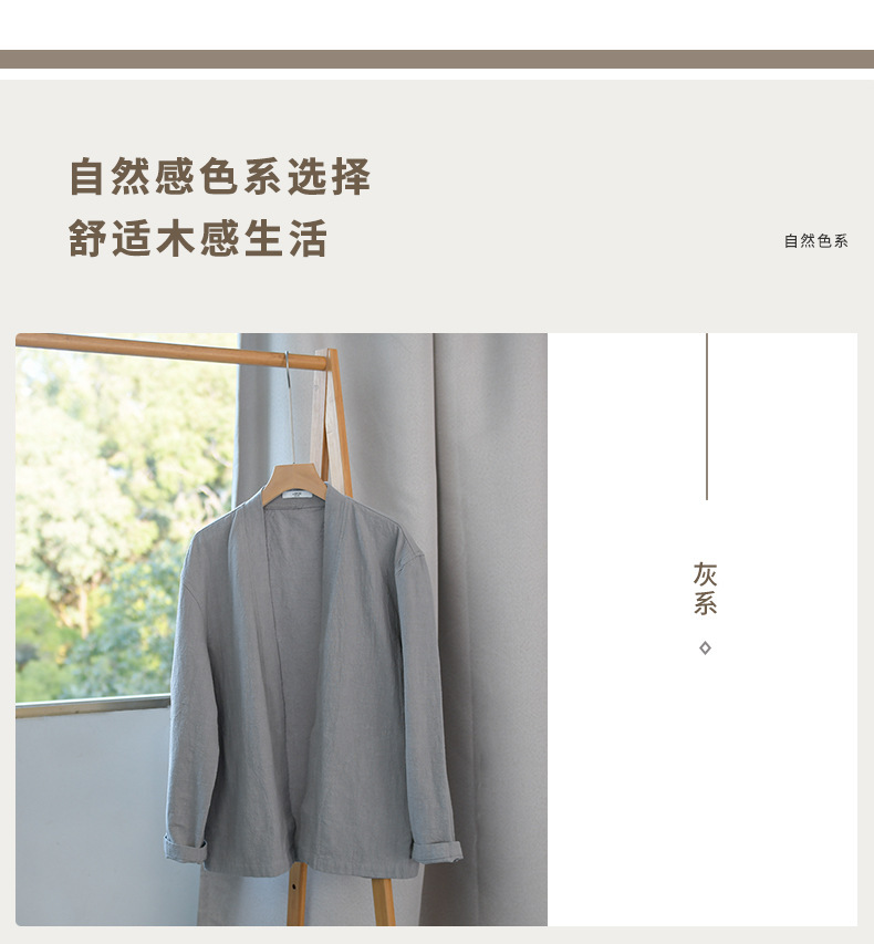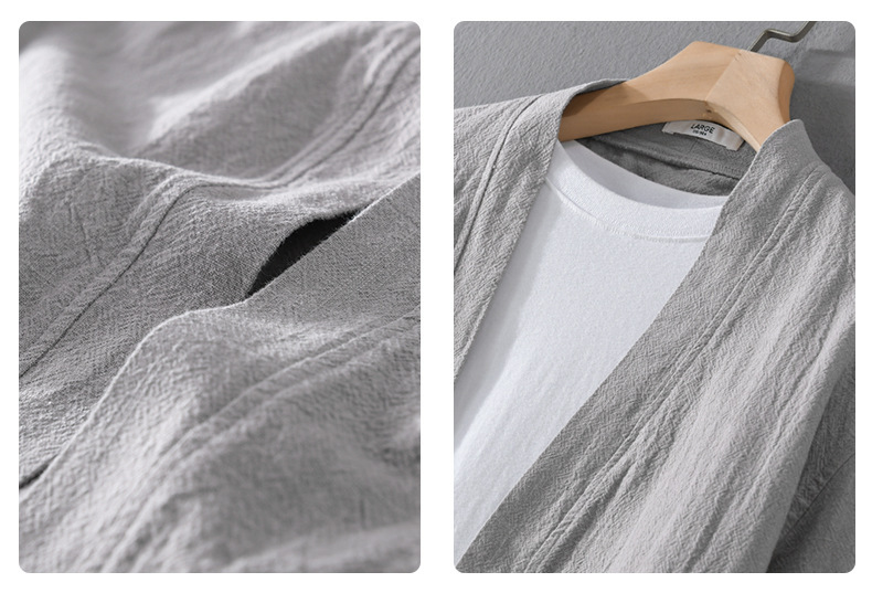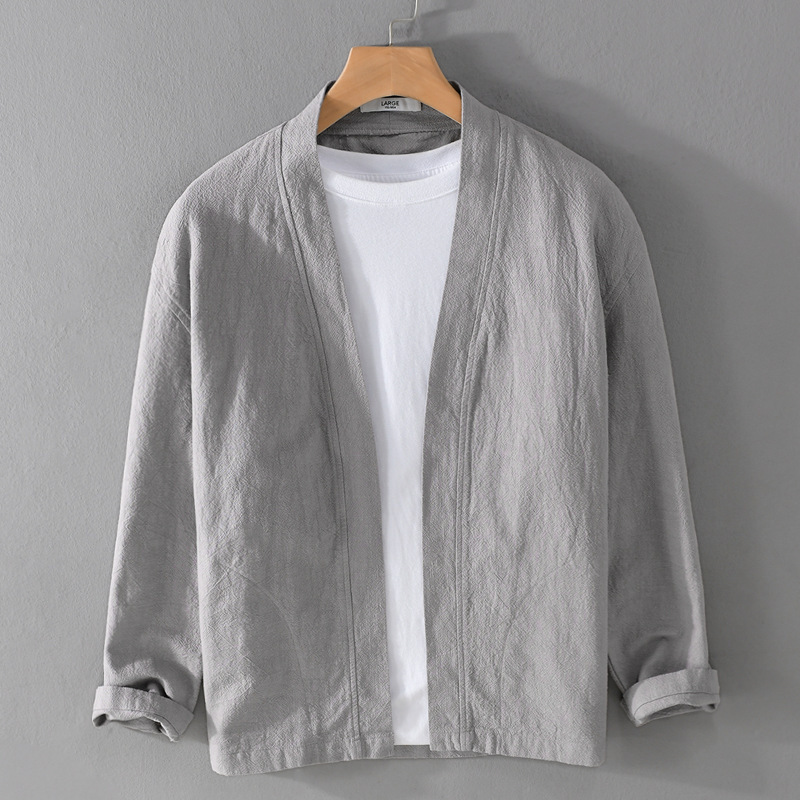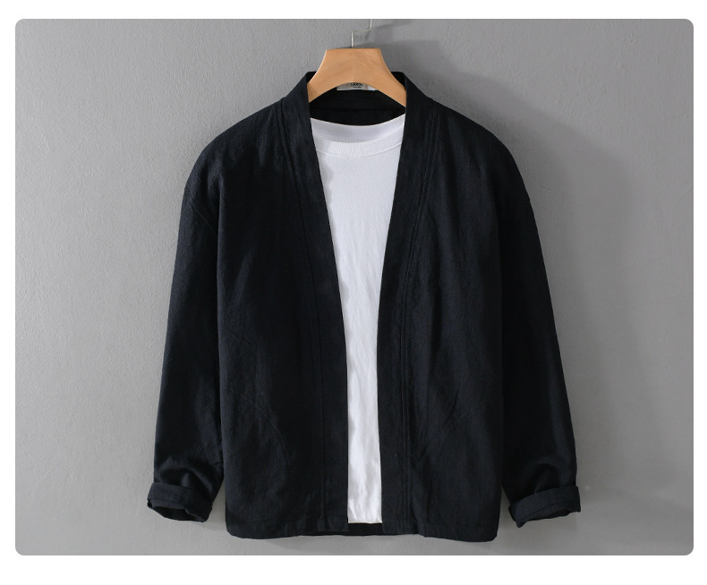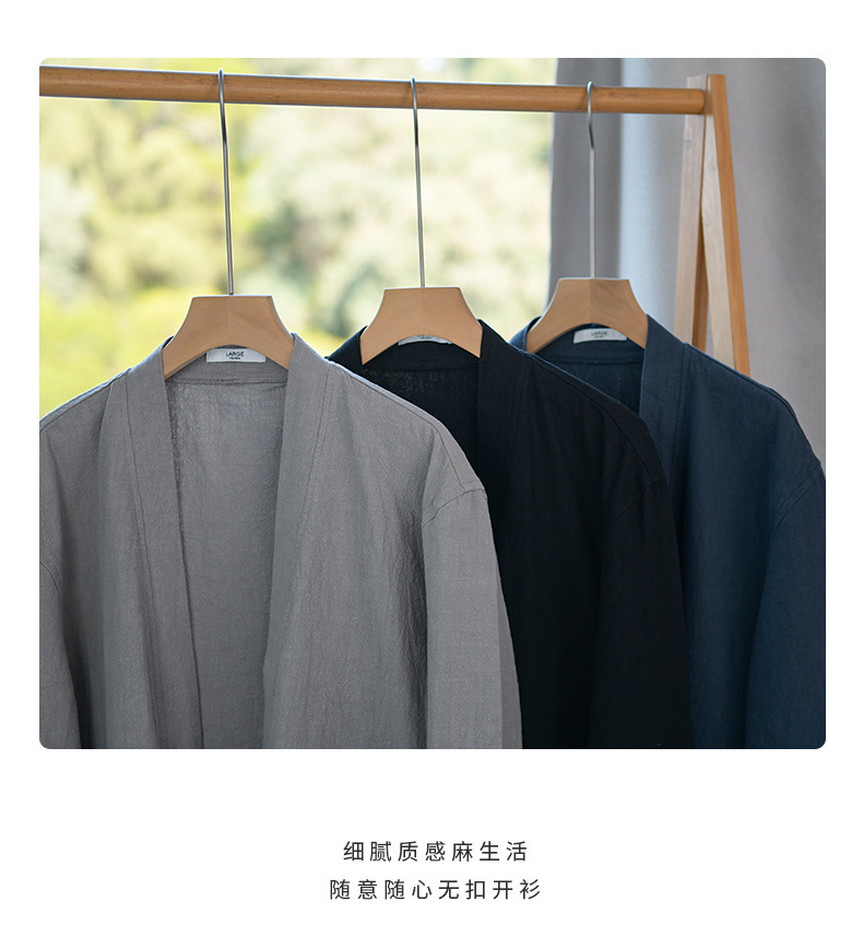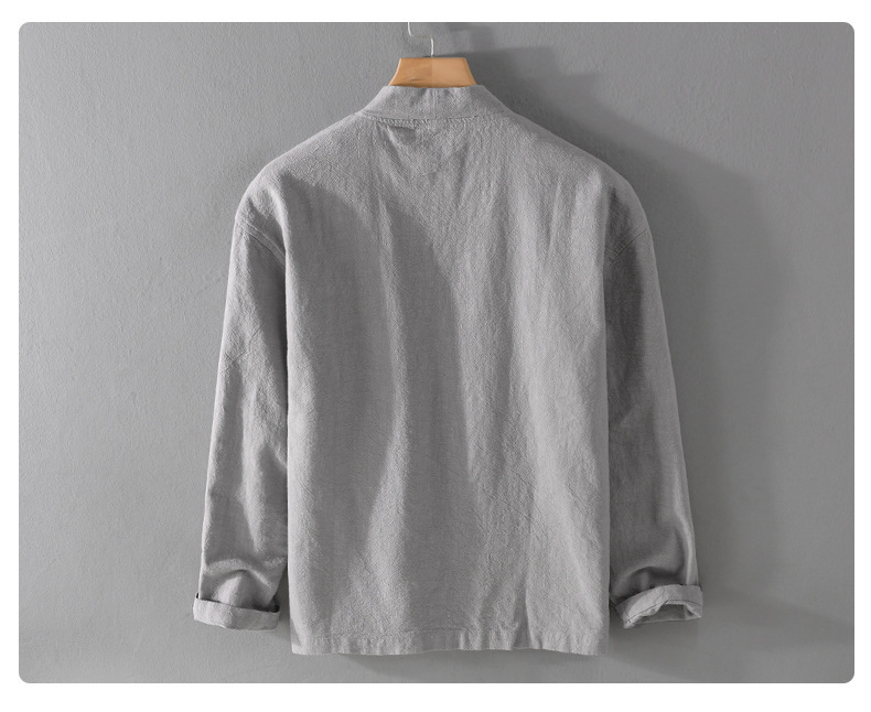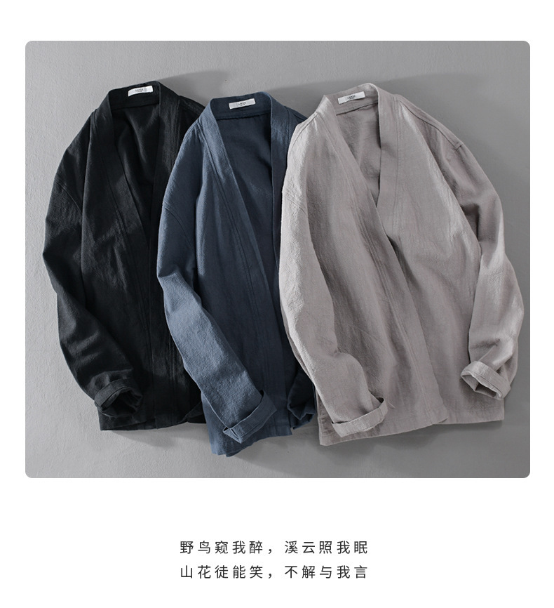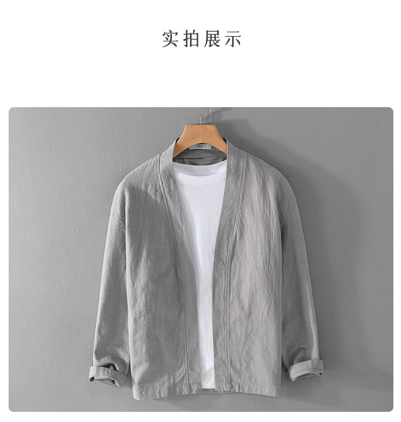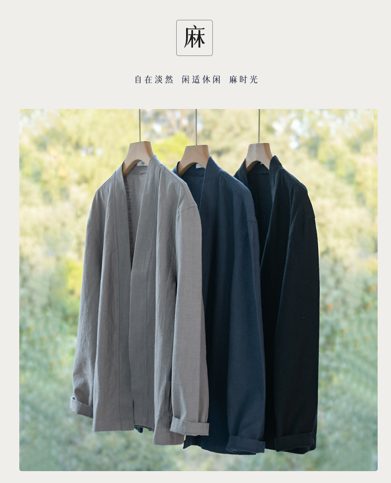 남성 캐주얼 린넨 긴팔 셔츠 케이프 코트 중국 스타일 트렌디 캐주얼 느슨한 예술적 남성 9841 탑스토어 가기