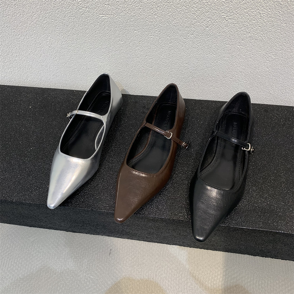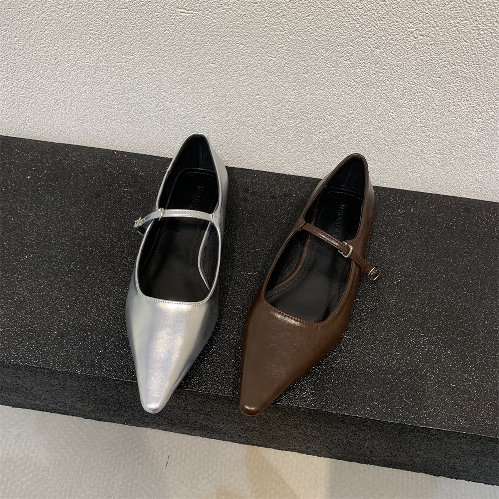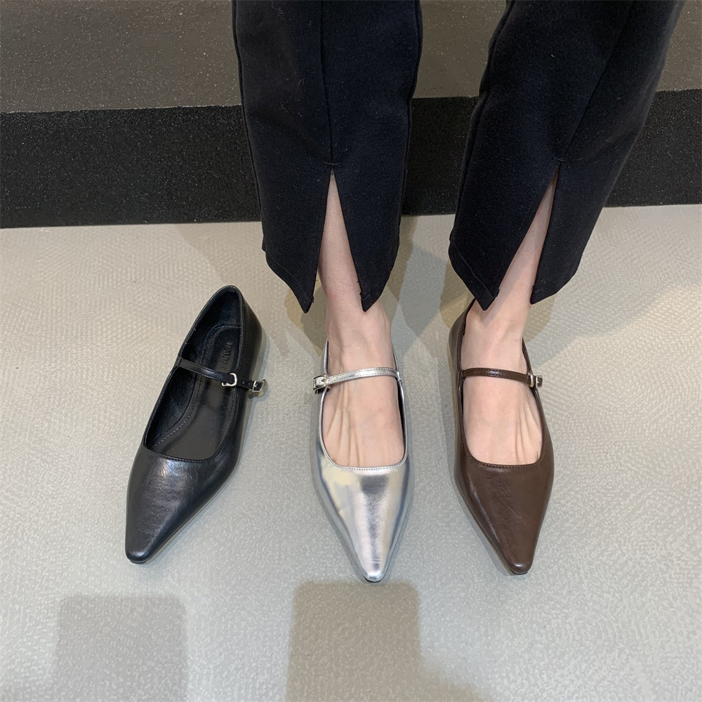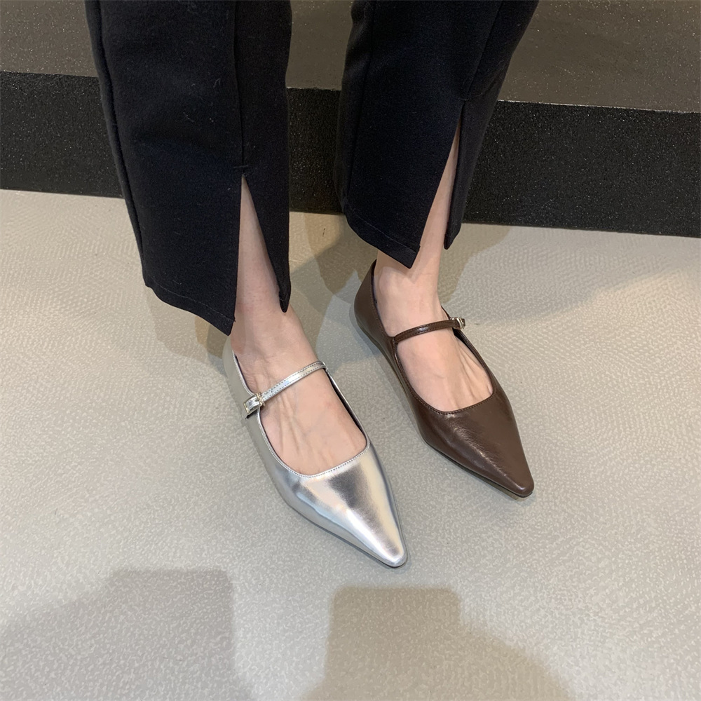 실버 뾰족한 버클 메리 제인 신발 여성용 2022 가을 스키니 가죽 신발 우아한 얕은 입 낮은 굽 단일 레이어 신발스토어 가기