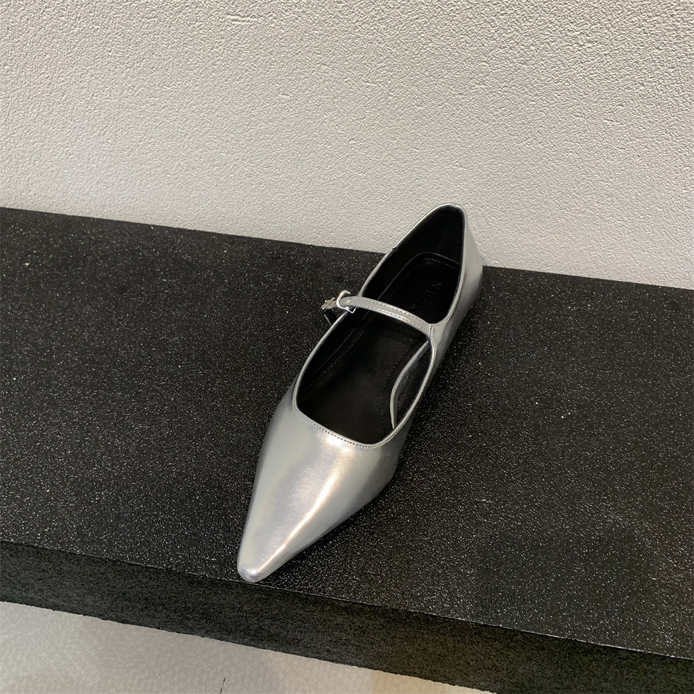 실버 뾰족한 버클 메리 제인 신발 여성용 2022 가을 스키니 가죽 신발 우아한 얕은 입 낮은 굽 단일 레이어 신발