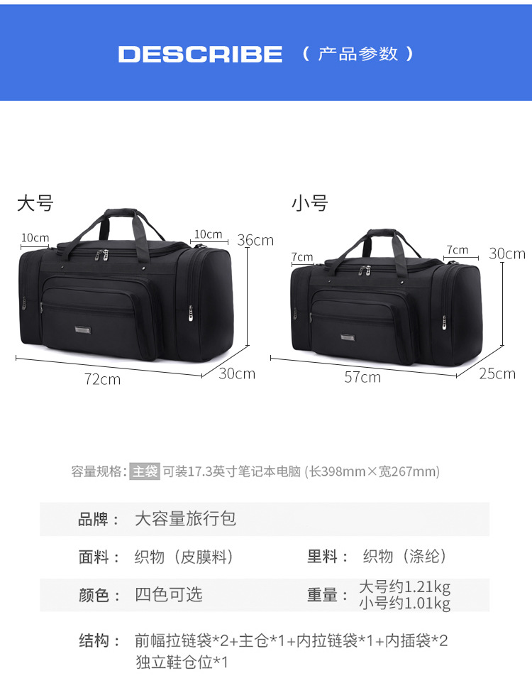 여행 가방 남성용 대용량 휴대용 대형 여행 탑승 원 숄더 오버사이즈 작업복 더플백