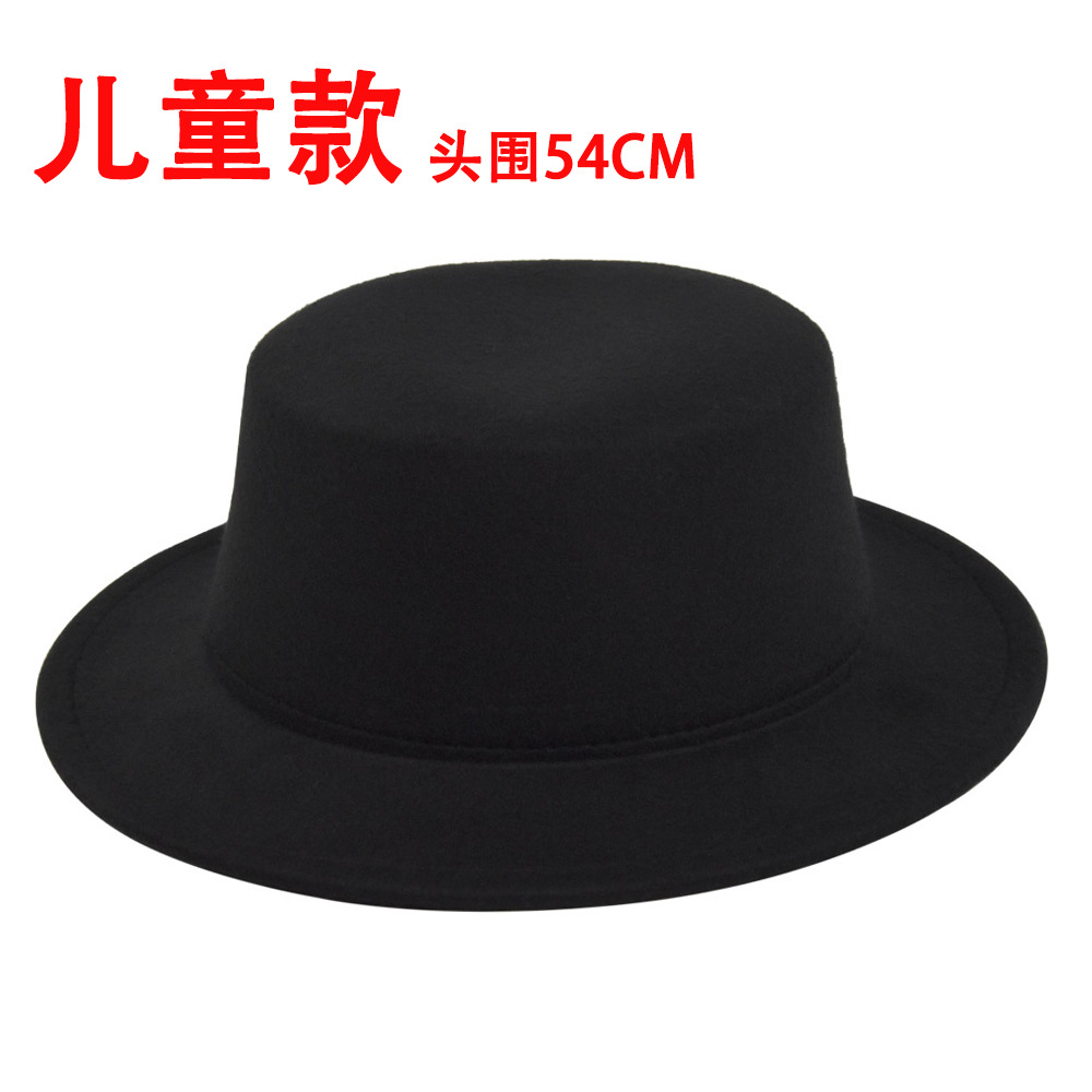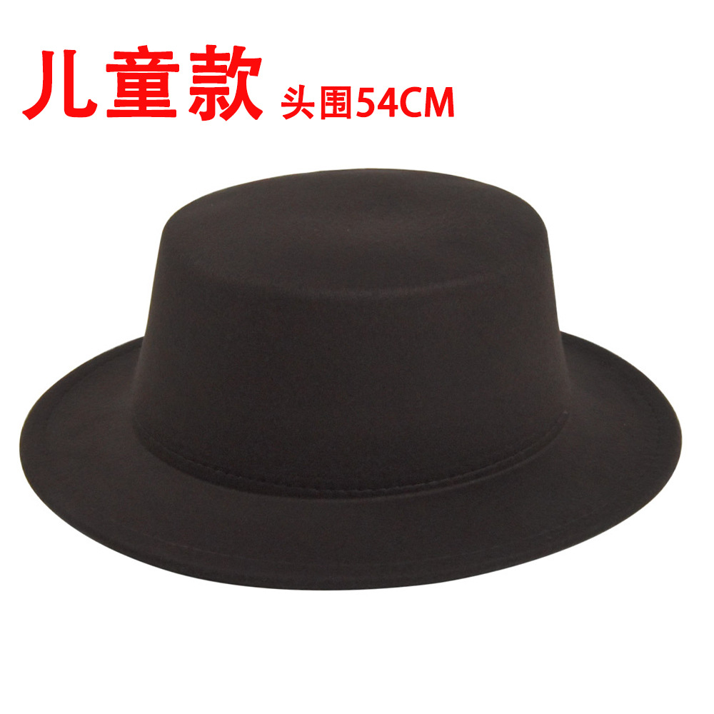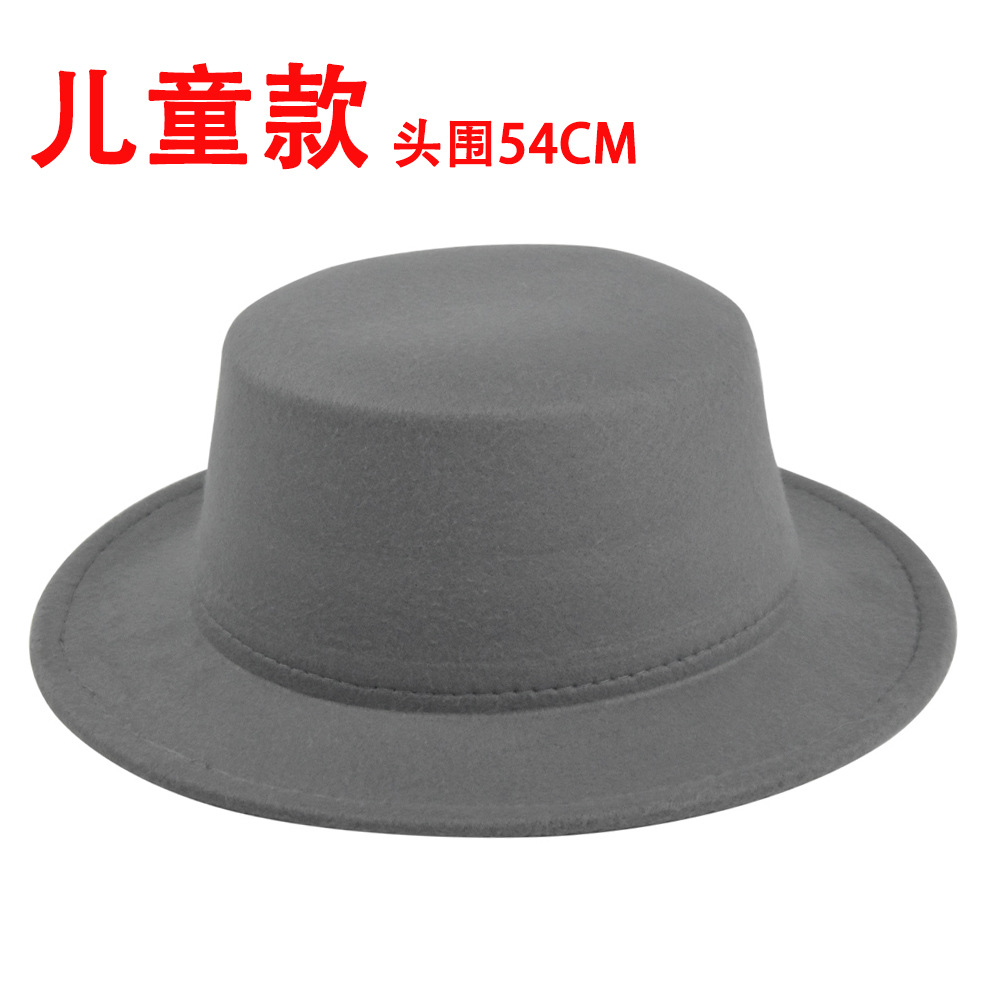 어린이 재즈 모자 중간 어린이 울 탑 모자 플랫 탑 펠트 모자 레트로 모조 양 모자 플랫 챙 모자 BR400