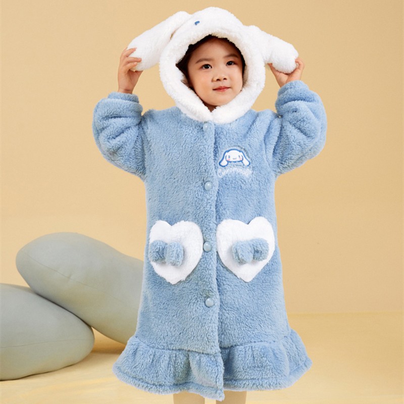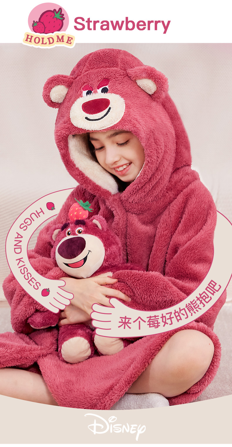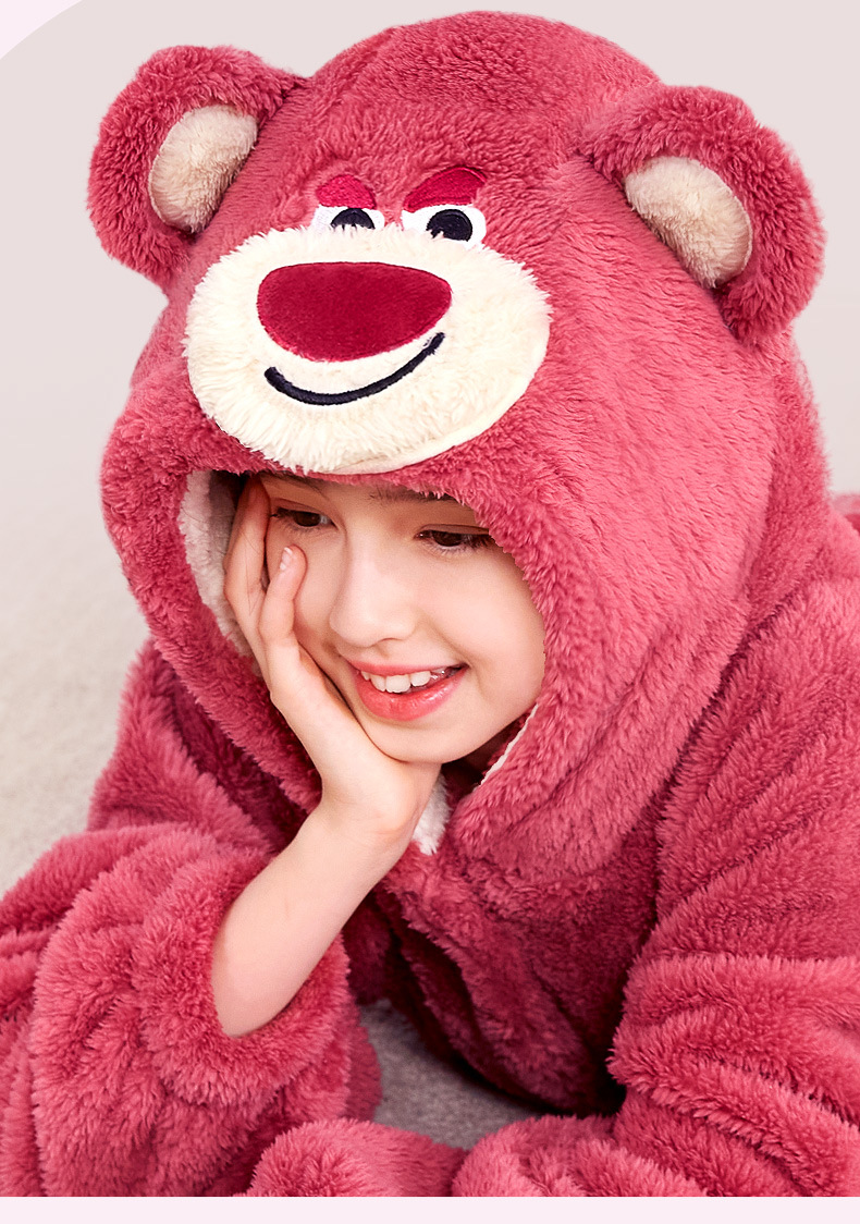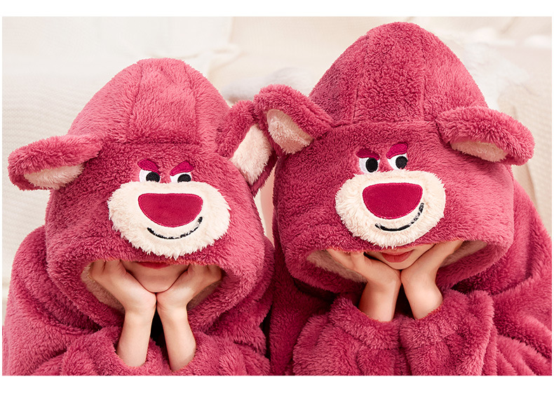 어린이 잠옷 봄과 가을 새로운 스타일 여자 아이 빨간 딸기 곰 플러스 벨벳 두꺼운 코랄 벨벳 따뜻한 잠옷 세트