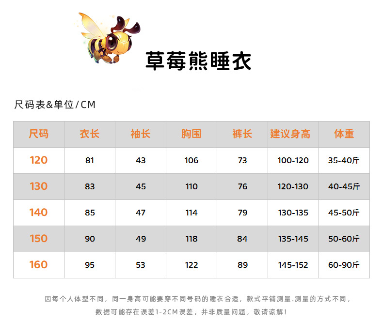 • 어린이 딸기 곰 싱글 잠옷 + 바지