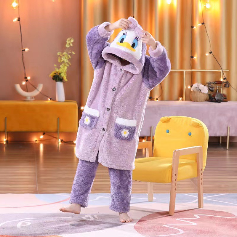 • 어린이 보라색 오리 싱글 가운 + 바지