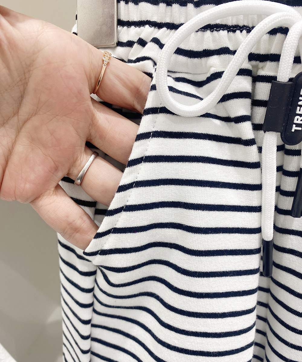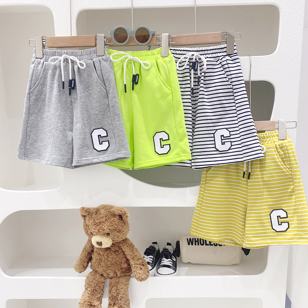 2023 여름 새로운 한국어 버전의 아동복 소년 어린이 줄무늬 니트 탄성 스포츠 반바지 바지 도매스토어 가기