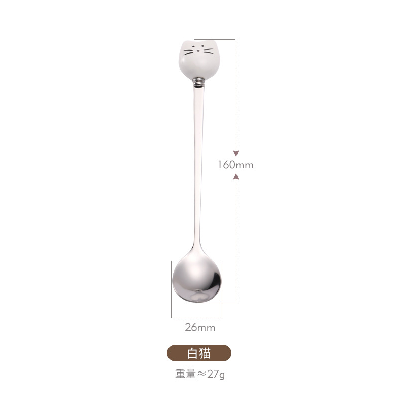 批量修改图片上传1631585694批发创意陶瓷猫咪不锈钢咖啡勺蜂蜜搅拌勺 马克杯长柄不锈钢勺子