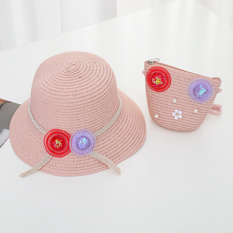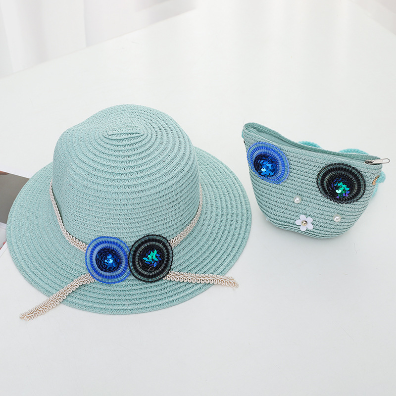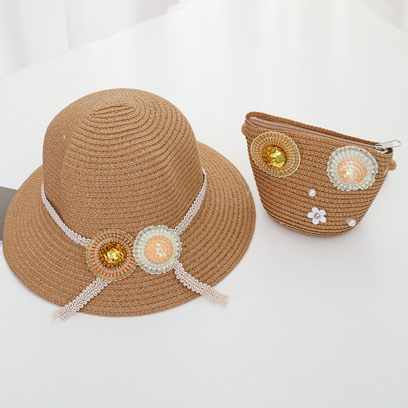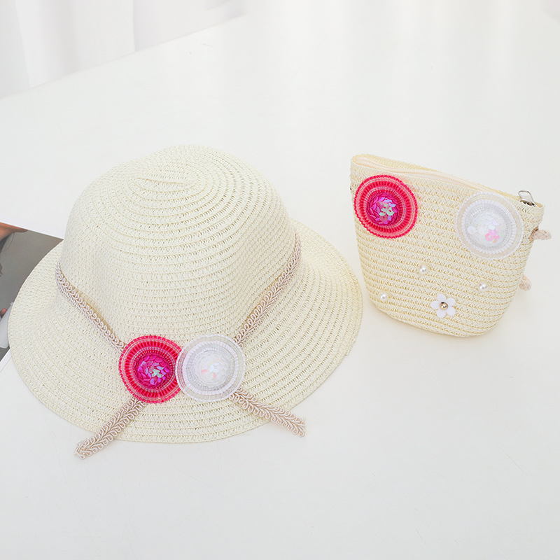 작은 신선한 어린이 자외선 차단제 공주 비치 모자 차양 모자 소녀 부모-자식 밀짚 모자 휴일 태양 모자 가방 멋진 모자