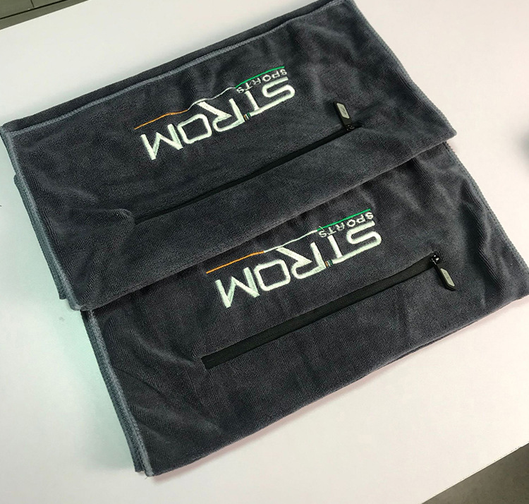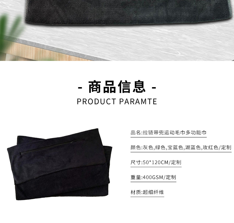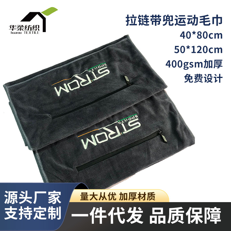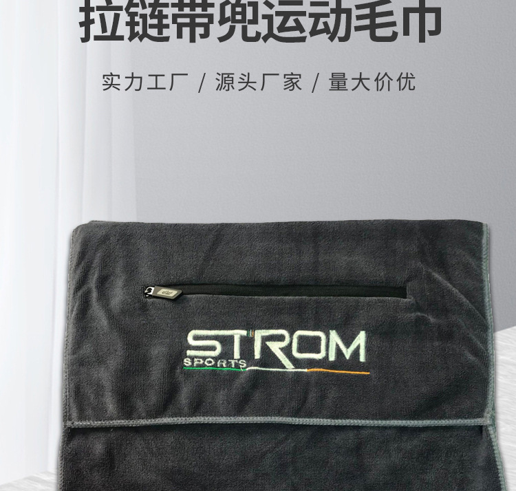 포켓 스포츠 타월 다기능 수건 아마존 체육관 수건 땀 흡수성 빠른 건조 휴대용 휴대 전화 지퍼