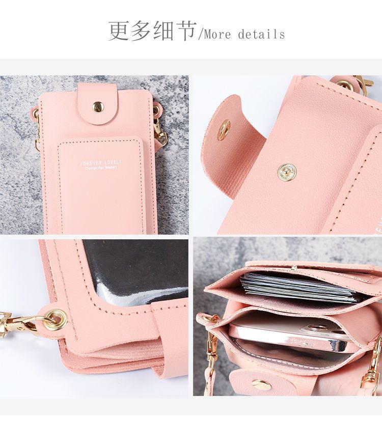 새로운 휴대 전화 가방 여성용 소형 학생 메신저 백 다기능 터치 스크린 휴대 전화 가방 동전 지갑 미니 가방