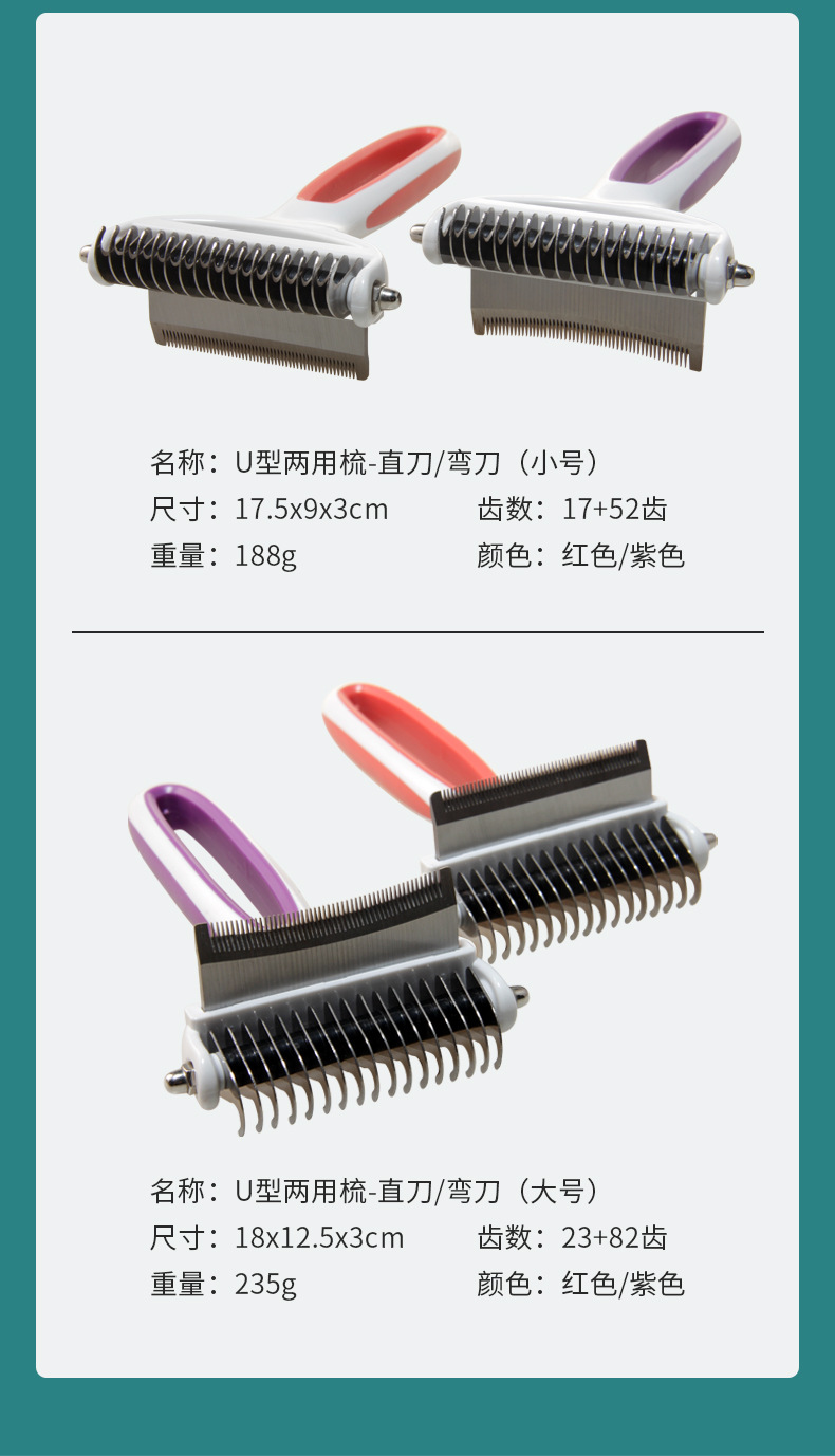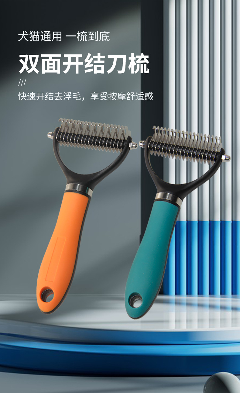 애완 동물 오픈 넥 빗 고양이 빗 애완 동물 제모 미용 용품 녹는 머리 빗 스테인레스 스틸 블레이드 양면 개 빗