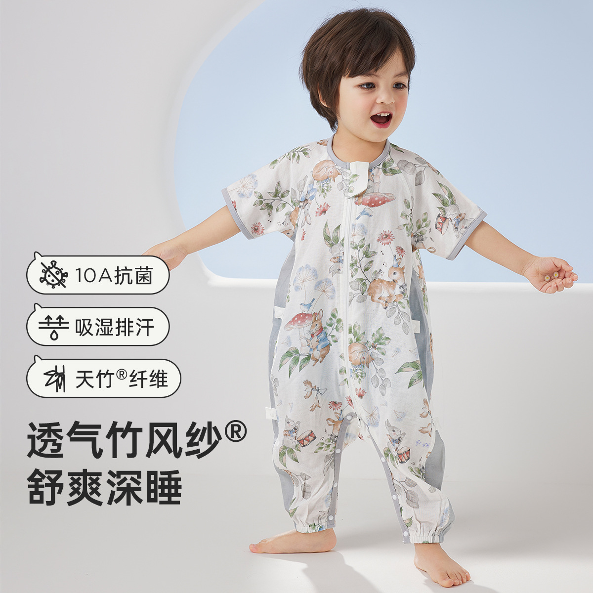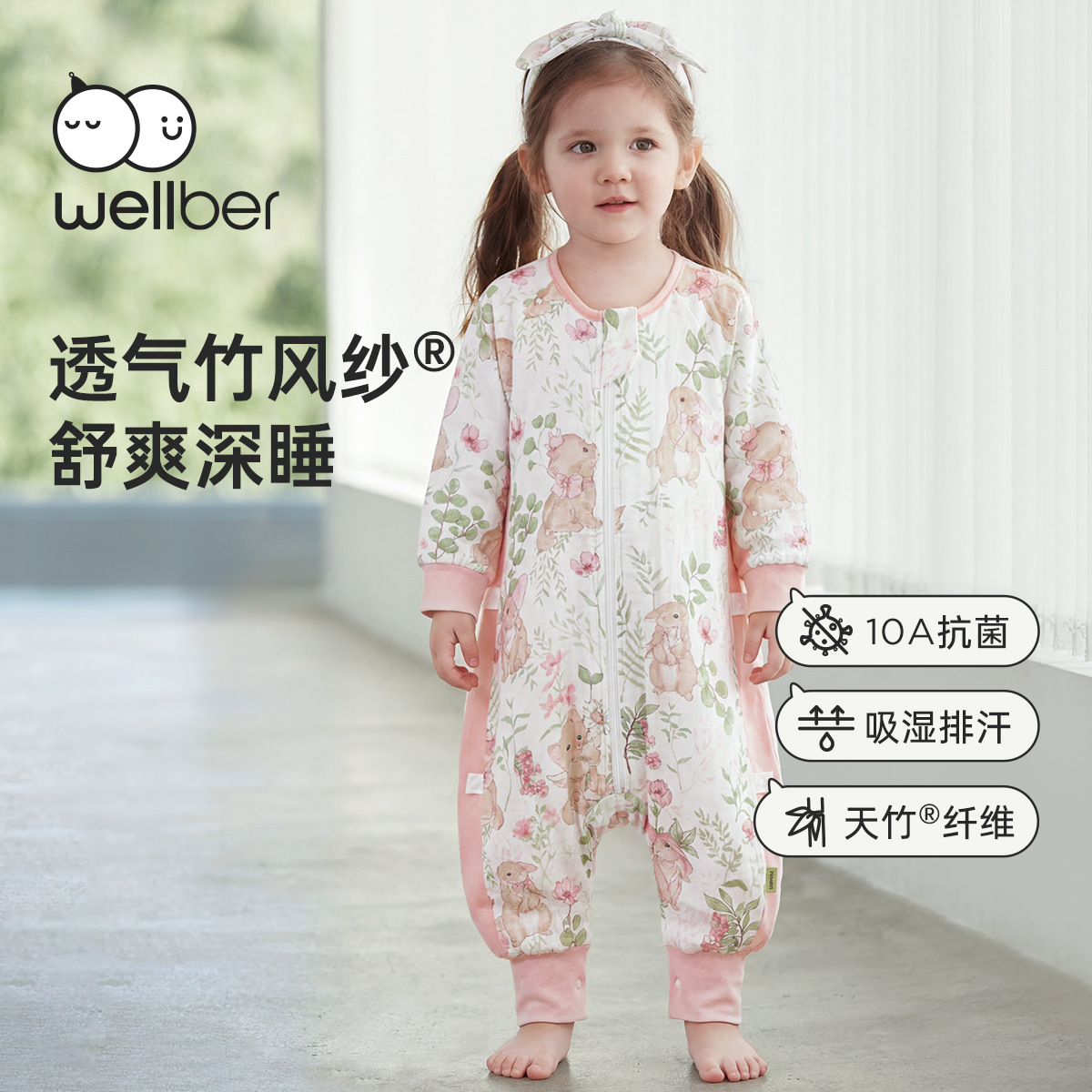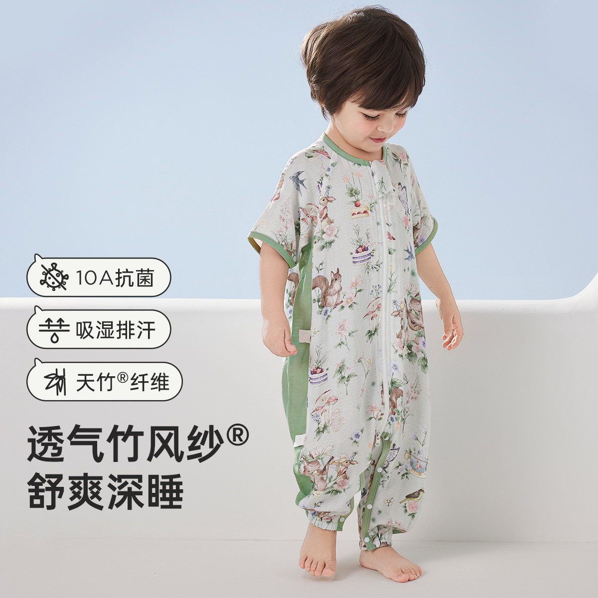 웰베르 유아용 침낭 봄여름 대나무면 거즈 다리 분리형 침낭 얇은 아기 잠옷 A형스토어 가기