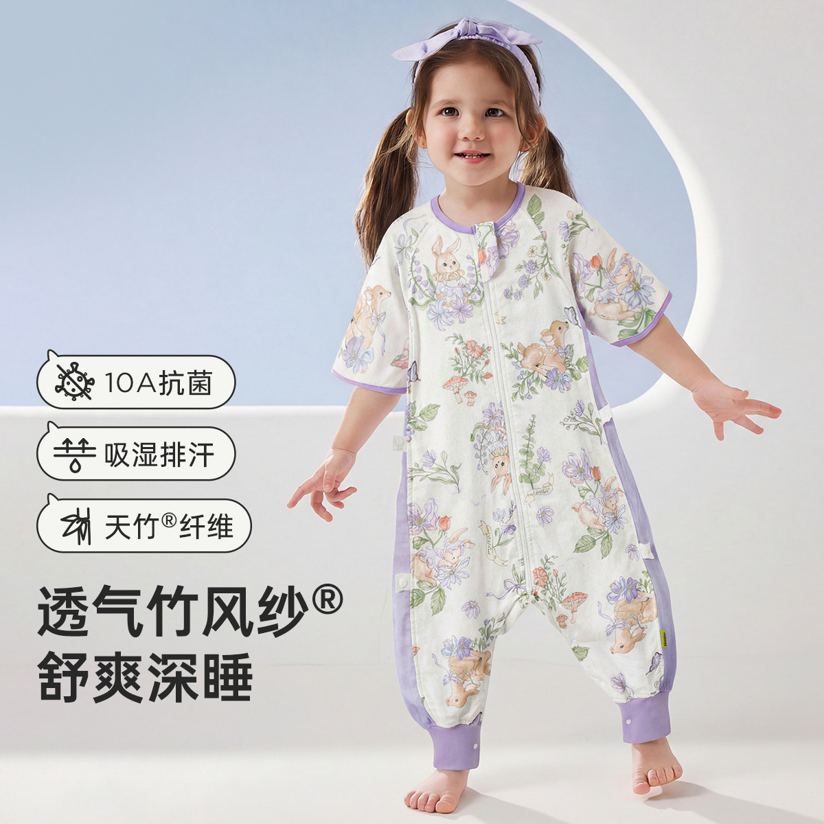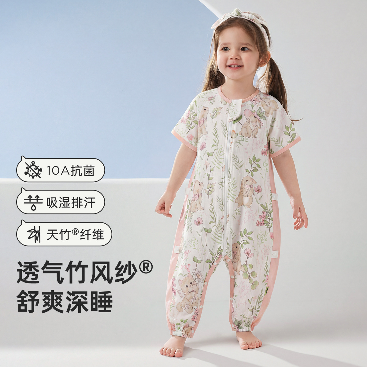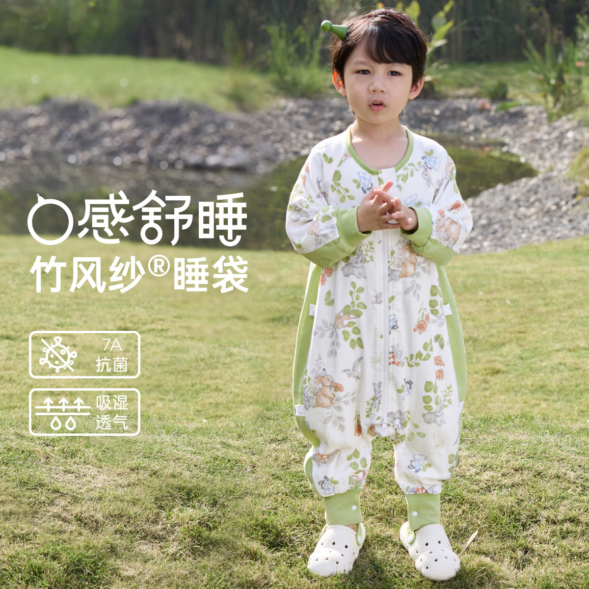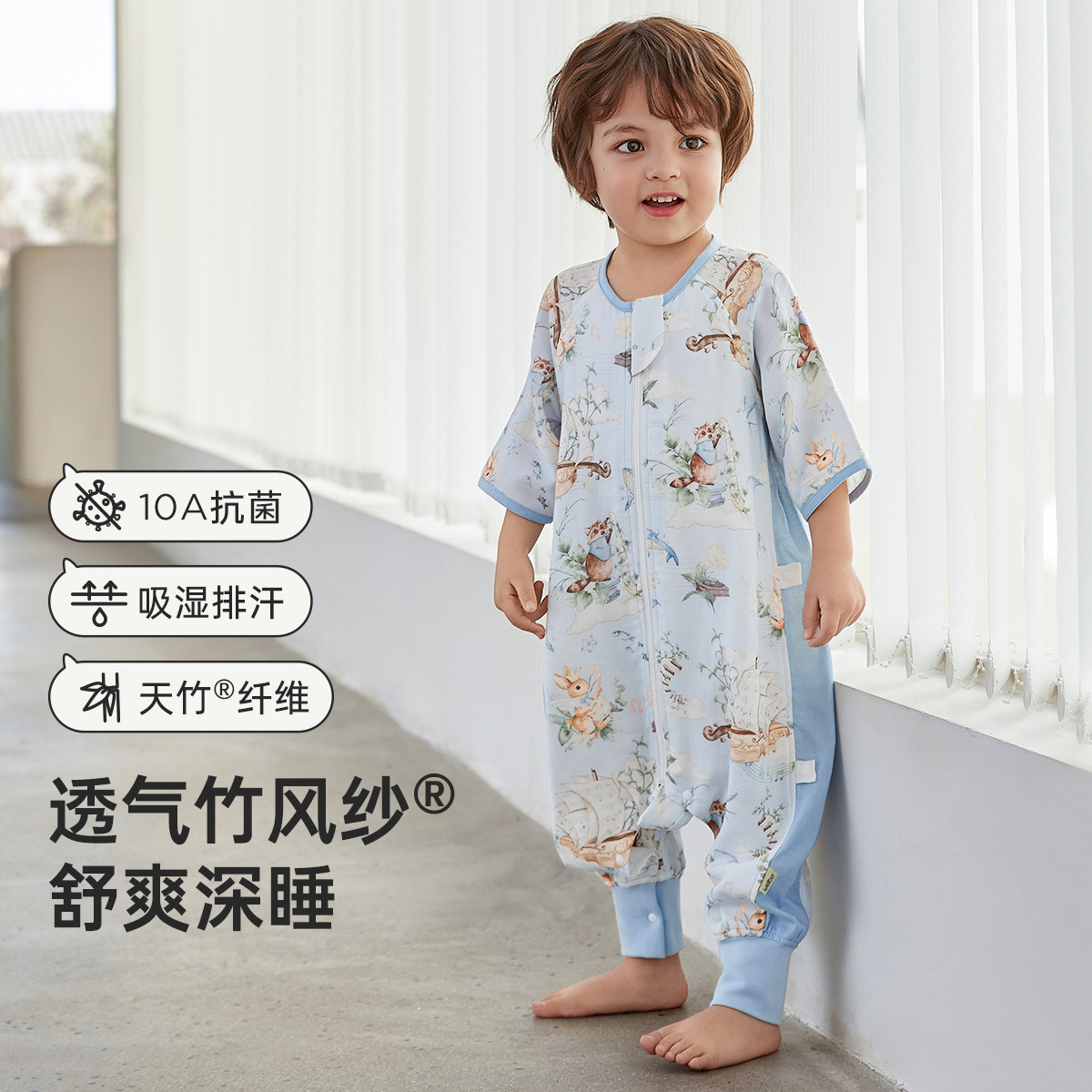 웰베르 유아용 침낭 봄여름 대나무면 거즈 다리 분리형 침낭 얇은 아기 잠옷 A형스토어 가기