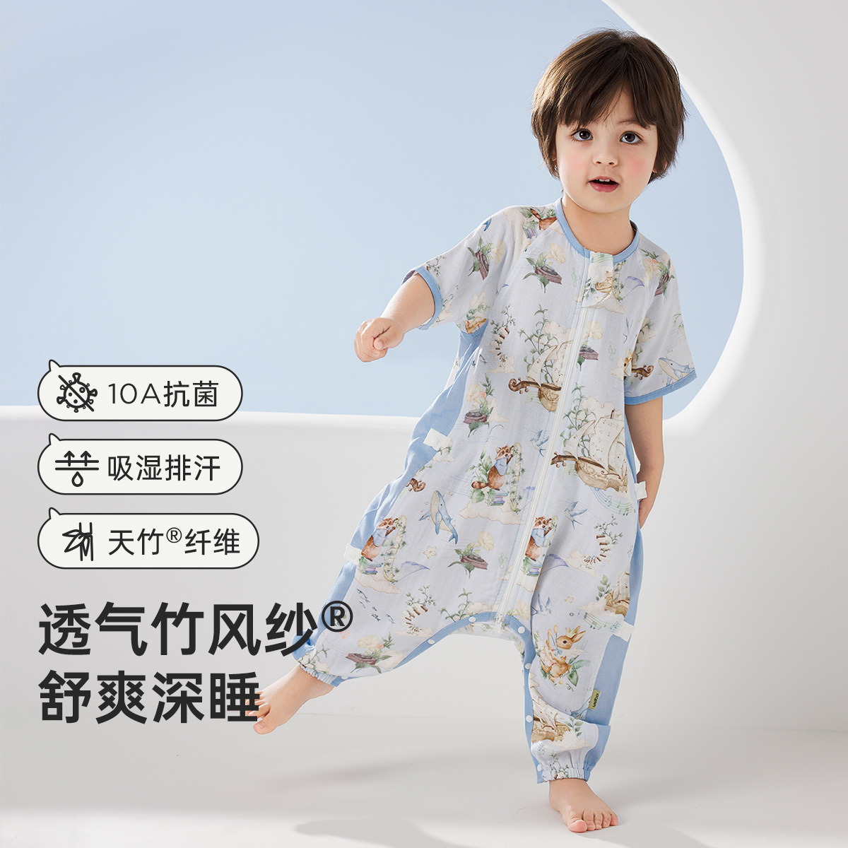 웰베르 유아용 침낭 봄여름 대나무면 거즈 다리 분리형 침낭 얇은 아기 잠옷 A형