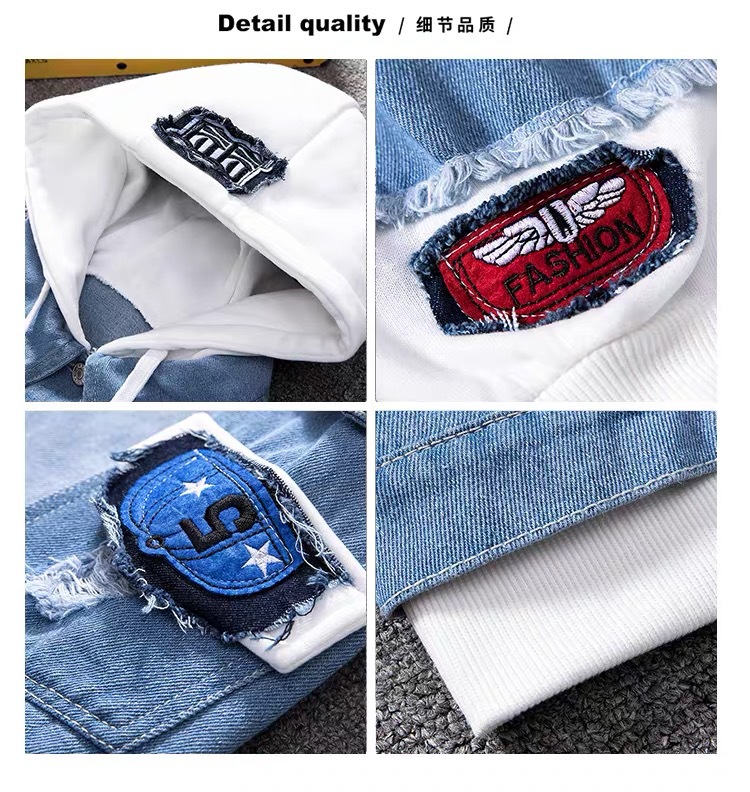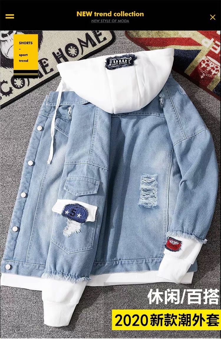 아메리칸 스타일 레트로 데님 재킷 남자의 봄과 가을 트렌디 브랜드 모든 매치 느슨한 가짜 투피스 후드 재킷 트렌디스토어 가기