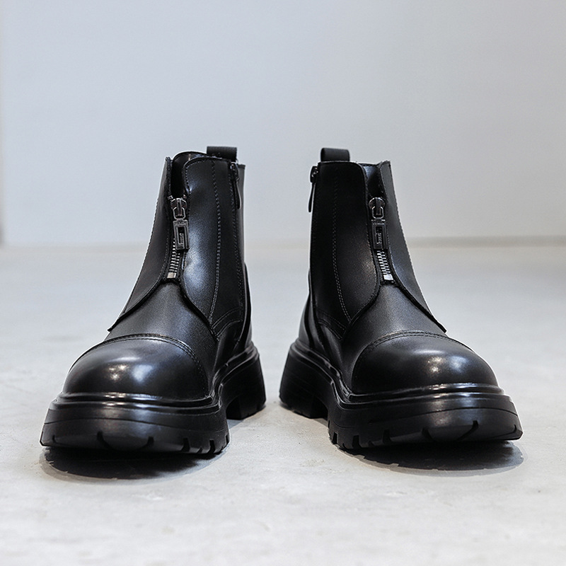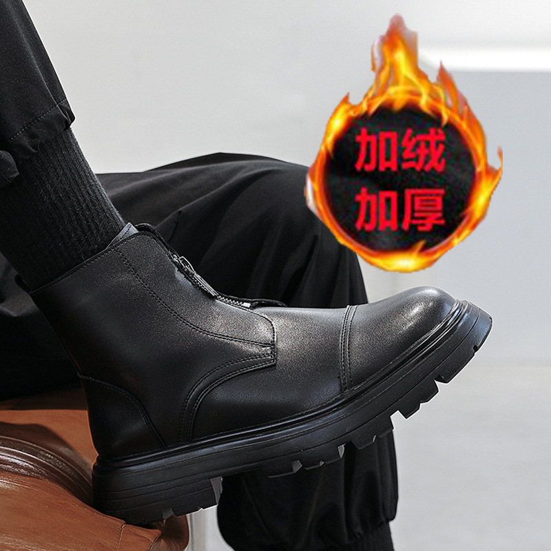 가을과 겨울 마틴 부츠 남성용 트렌디 한 영국 스타일 캐주얼 올 매치 블랙 쇼트 부츠 하이탑 가죽 신발 두꺼운 밑창 첼시 부츠