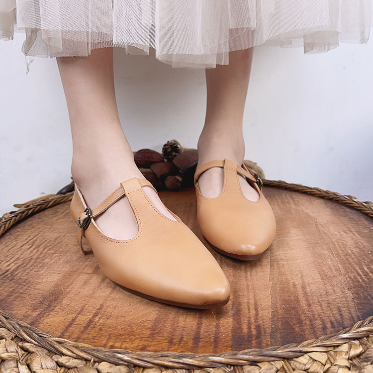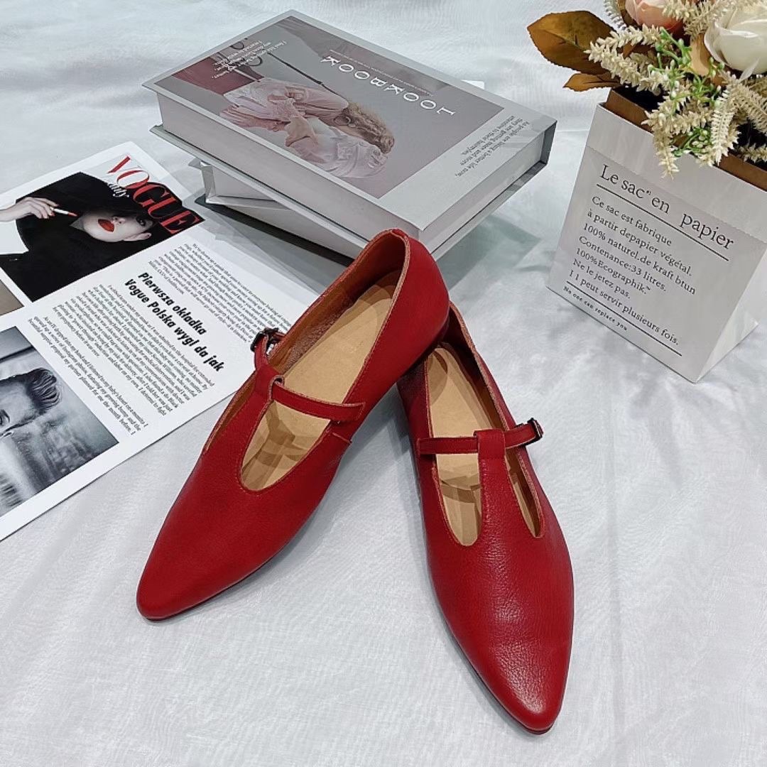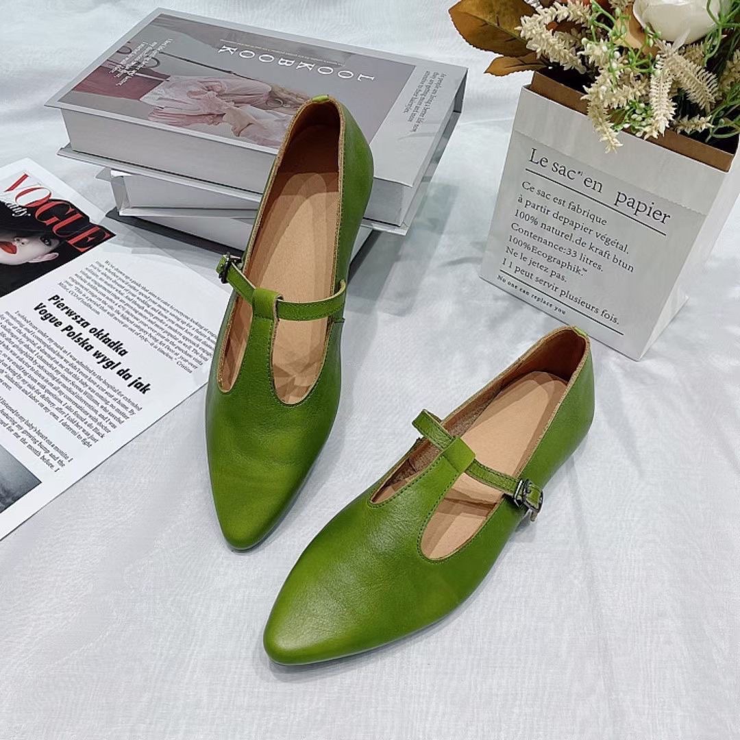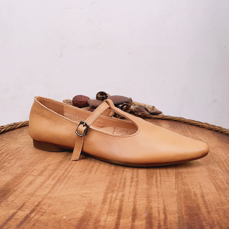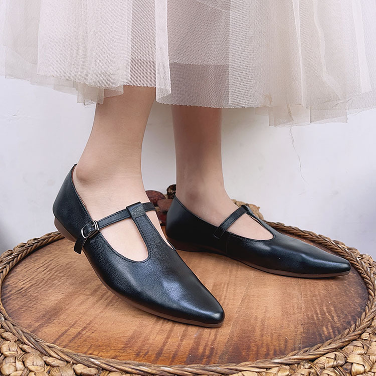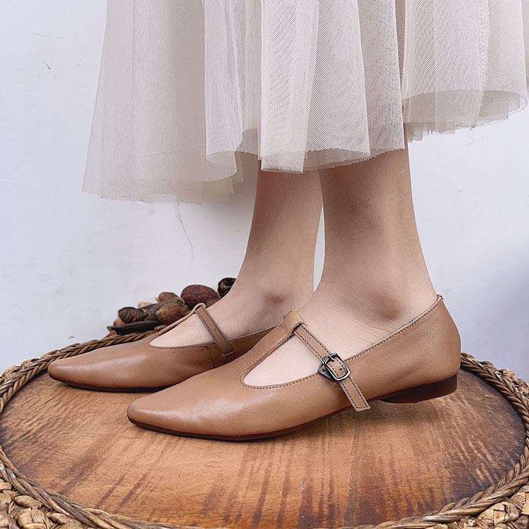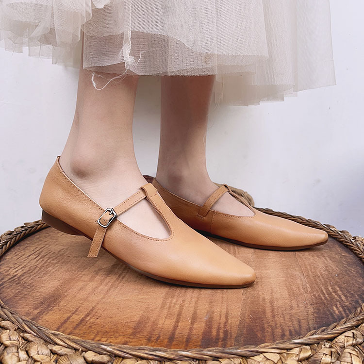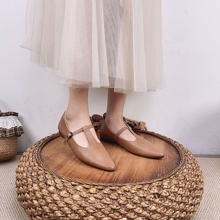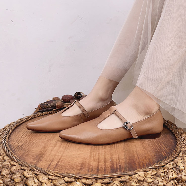 2025 뾰족코 플랫 버클 레트로 캐주얼 솔리드 컬러 소프트 솔 가죽 플랫 굽 광저우 재고 여성화스토어 가기