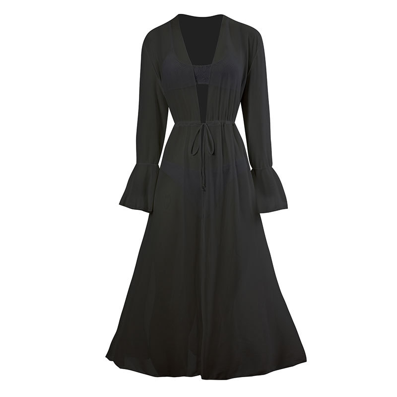 俏佳媛2025欧美新款分体泳衣女士尚性感挂脖系带雪纺裹裙三件套装