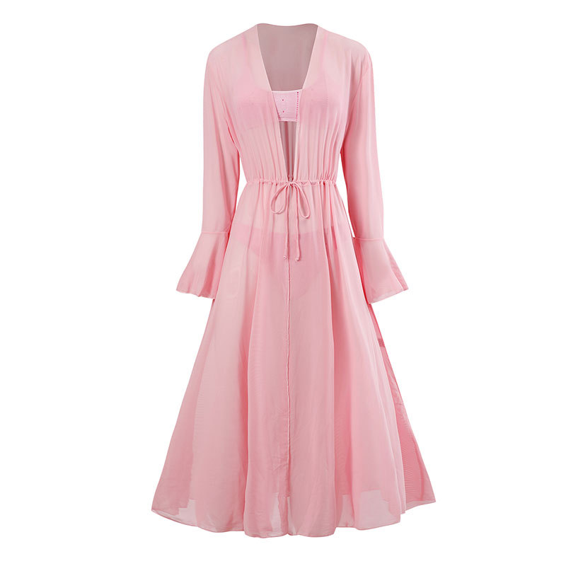 2024新款外贸聚拢比基尼性感高腰bikini分体泳衣套装批发雪纺长裙