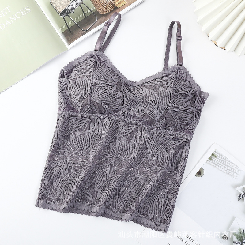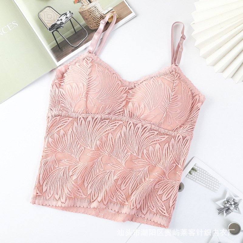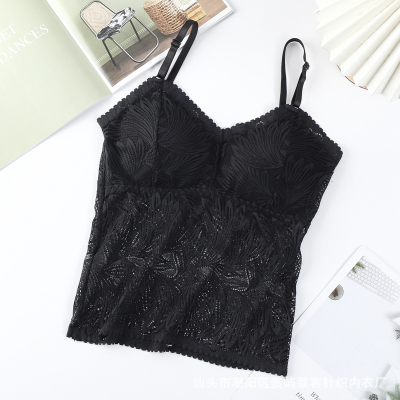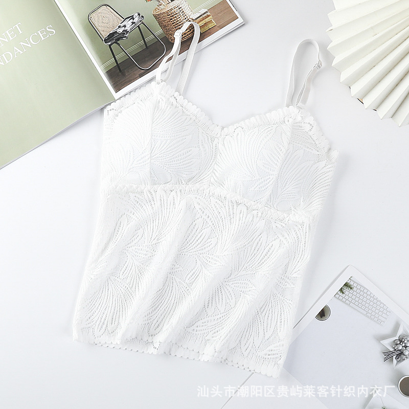 봄 새로운 한국 스타일 섹시 풀 레이스 슬링 가슴 패드가있는 아름다운 등 조끼 모든 매치 베이스 랩 탑