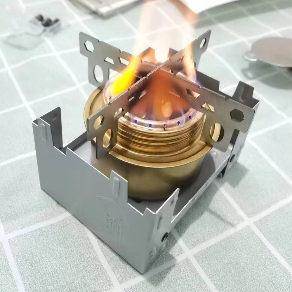 야외 피크닉 휴대용 비 압력 화재 액체 고체 알코올 스테인레스 스틸 휴대용 캠핑 작은 알코올 스토브 작은 브래킷스토어 가기