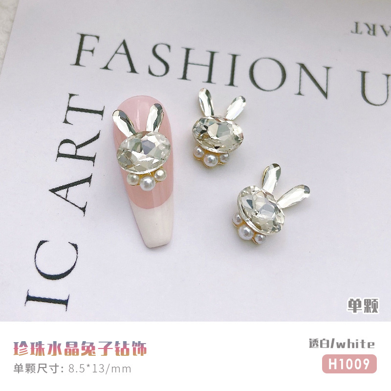 2023 새해 사이버 연예인 네일 아트 크리스탈 토끼 완성 합금 보석 귀여운 토끼 원피스 네일 다이아몬드 보석스토어 가기