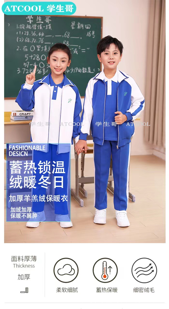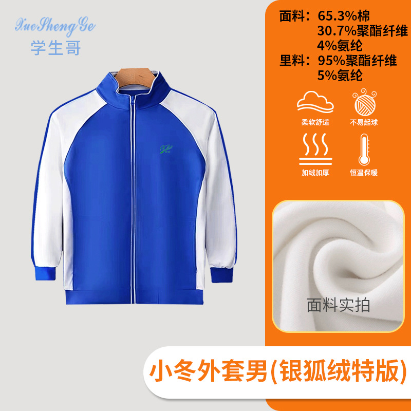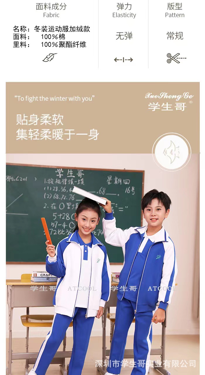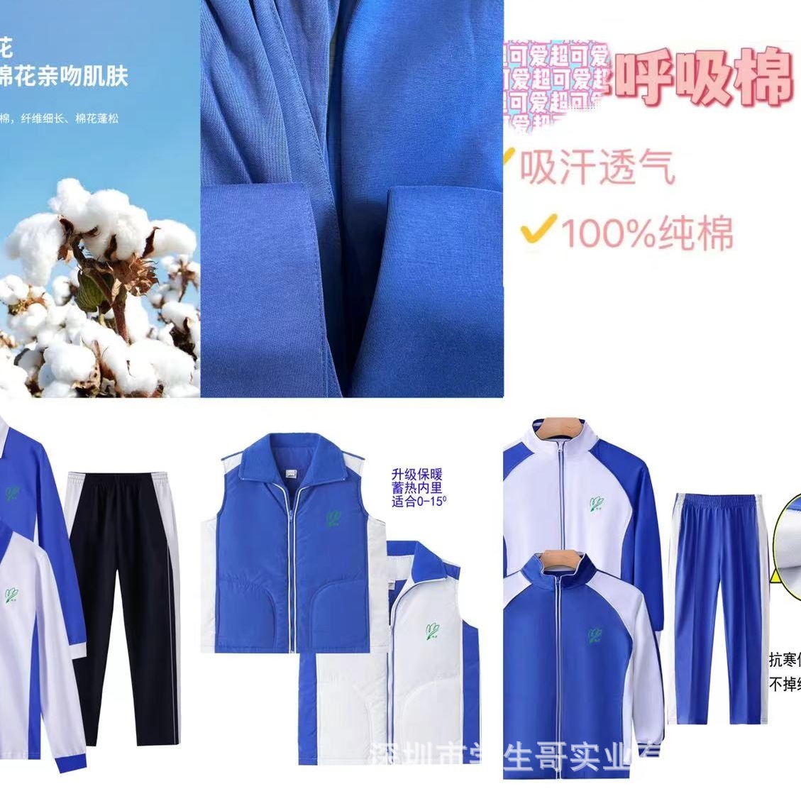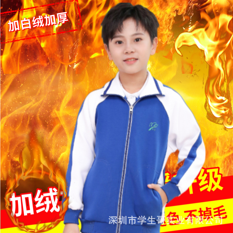면 조끼 심천 교복 초등학생 가을 겨울 기모 운동복 세트 기모 바지 삼중 방수 캠퍼스 스타일 재킷